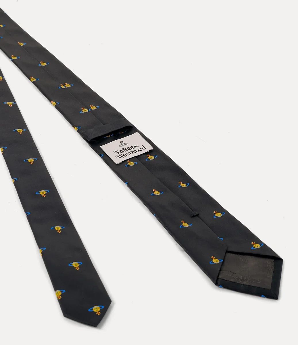 Vivienne Westwood silk tie offers the house’s multi-coloured orb jacquard across the design and features a wide blade that falls into a classic pointed tip.