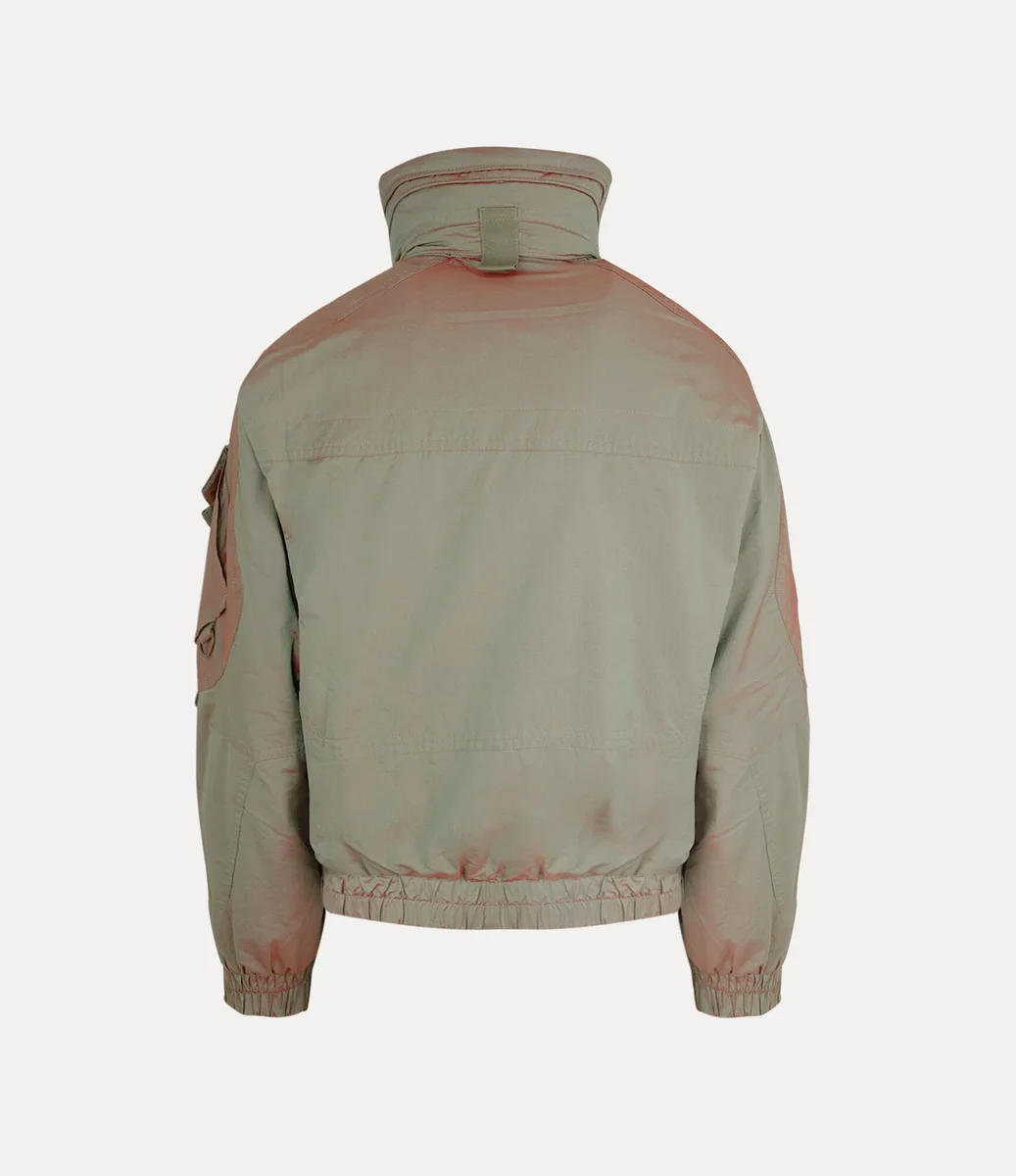 Vivienne Westwood Nevada bomber jacket has a two-tone finish with a high funnel-neck silhouette.