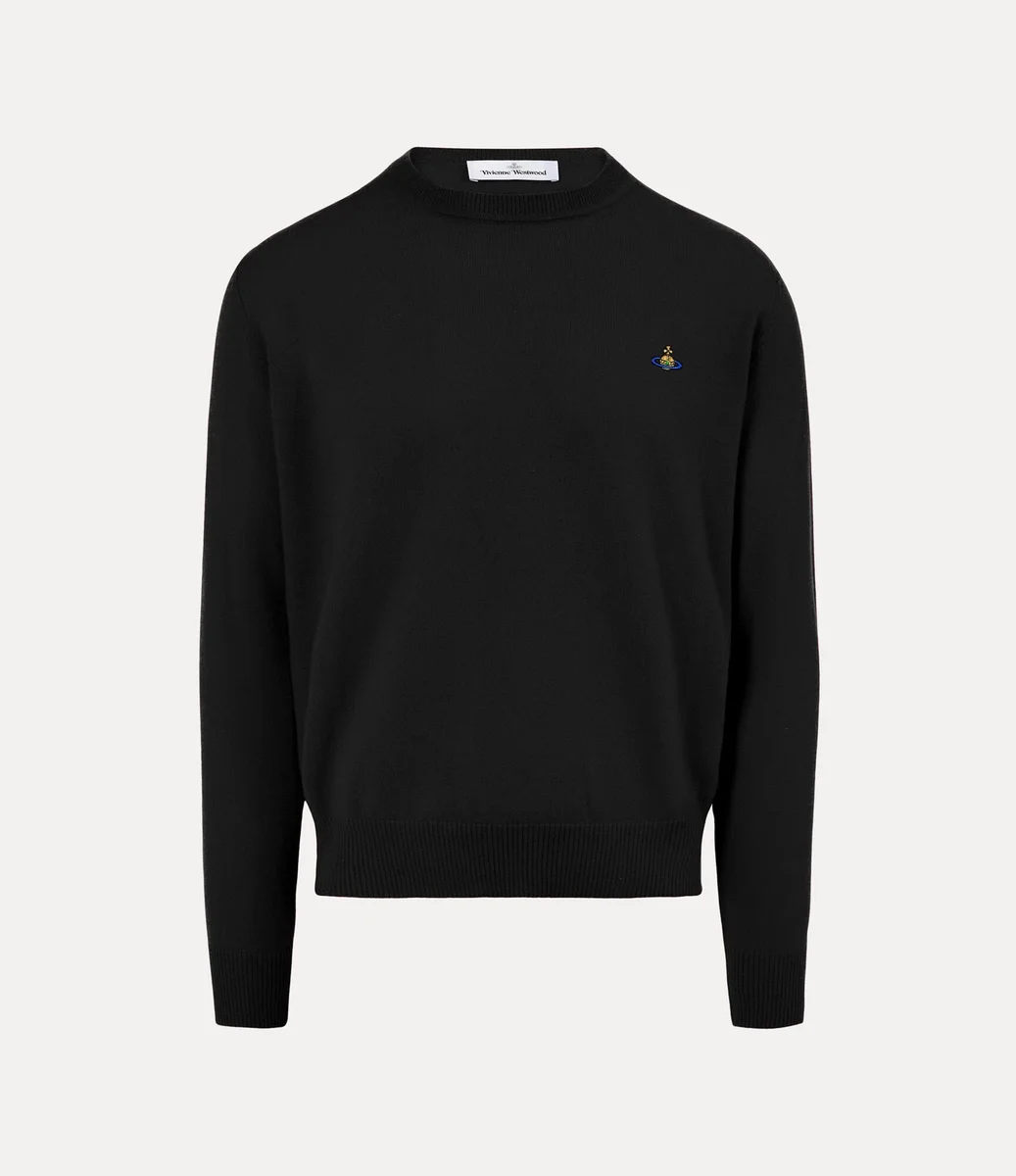 The Alex Round Neck jumper is a signature piece of the house, crafted from a luxurious wool-cashmere blend this season. Designed with a classic crew neckline, the piece is adorned with our classic multi-coloured orb motif on the chest, embodying Vivienne’s vision of launching tradition into the future.