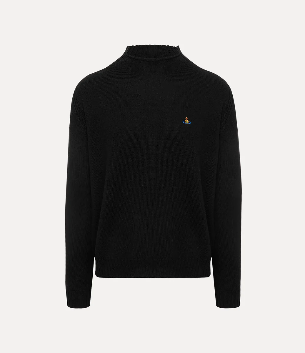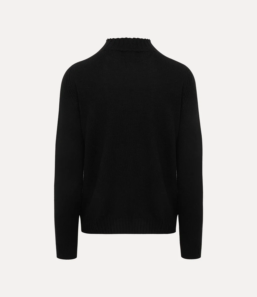 Our Fisherman jumper is crafted from soft wool, featuring a ribbed neckline that extends into a straight hem. Finished with long raglan sleeves with ribbed cuffs, the piece is adorned with a multicoloured embroidered orb on the left-hand side of the chest, recalling Vivienne’s vision of launching tradition into the future.