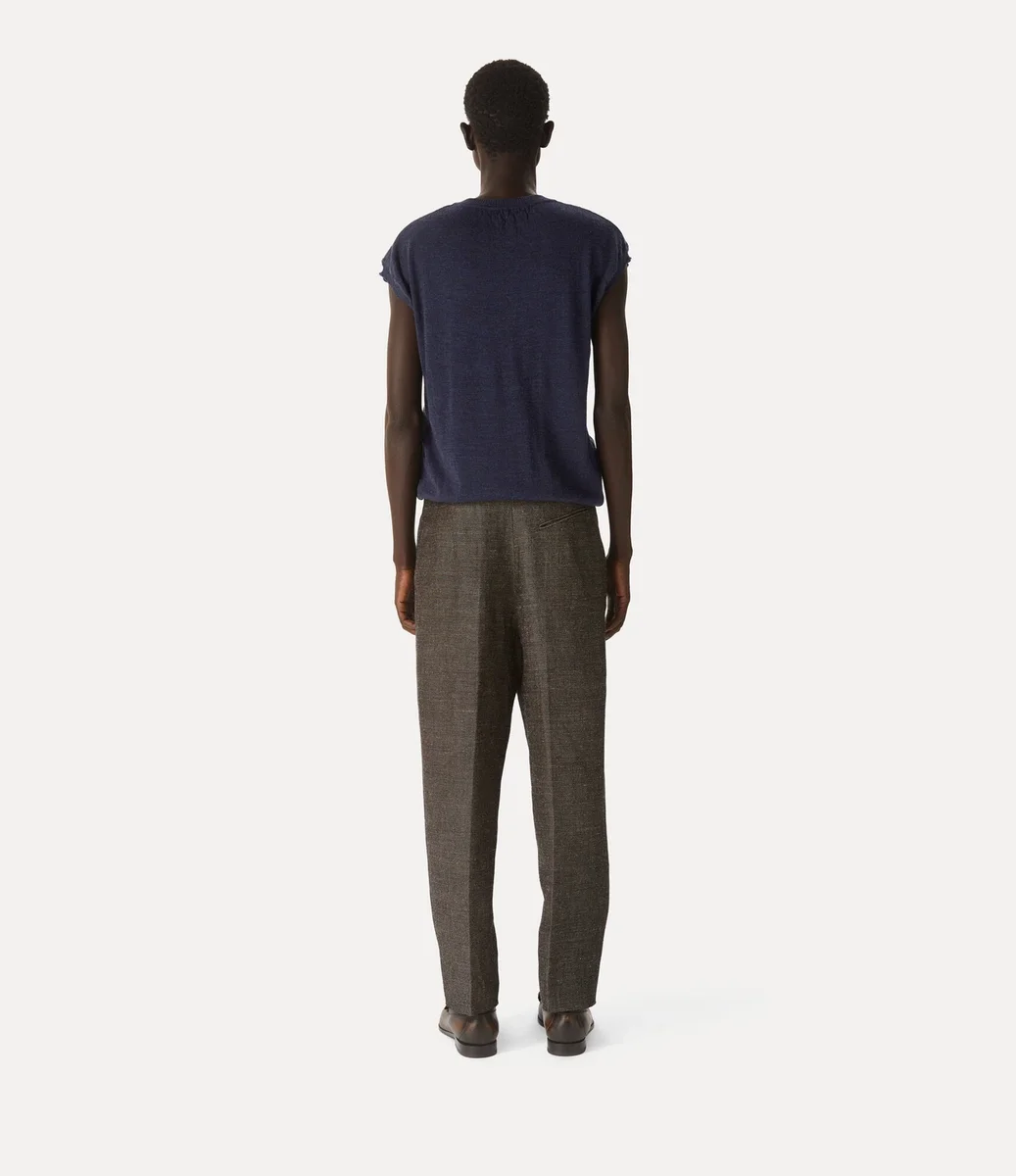 Our Greg vest is crafted from a wool-blend jacquard with contrasting diamond motifs, first seen in the Andreas Kronthaler for Vivienne Westwood Spring-Summer 2024 show. The piece offers a naturally wrinkled structure in the knit, finished with a ribbed hemline and a delicate embroidered orb detail.