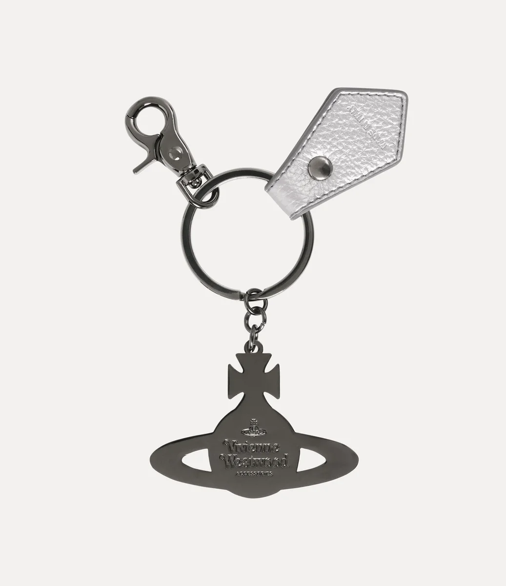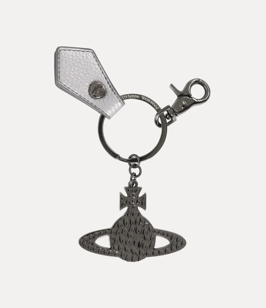 Vivienne Westwood Hammered Orb keyring offers a two-dimensional orb motif with a distinctive hammered texture, finished with a leather-profile tab.