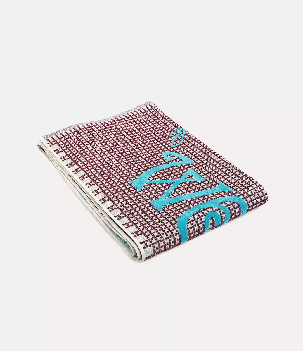 Our World’s End beach towel is crafted from soft cotton and showcases bold ‘Worlds End’ lettering in the typography of our original King’s Road boutique. Featuring a checkerboard stripe down the centre, the design is complete with the archival ‘Arm and Cutlass’ motif.