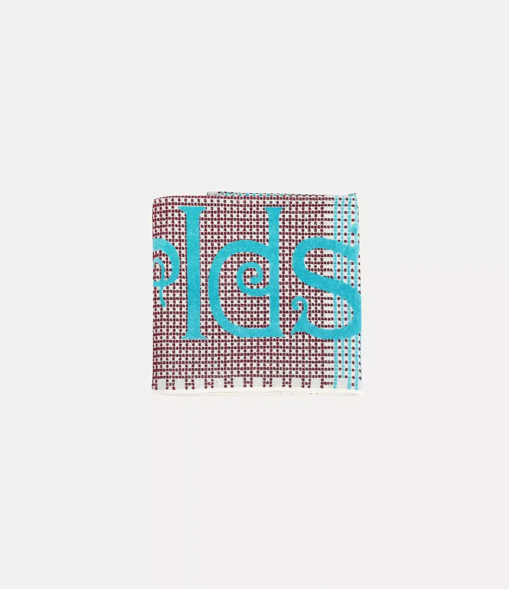 Vivienne Westwood World’s End beach towel is crafted from soft cotton and showcases bold ‘Worlds End’ lettering and a checkerboard stripe down the centre.