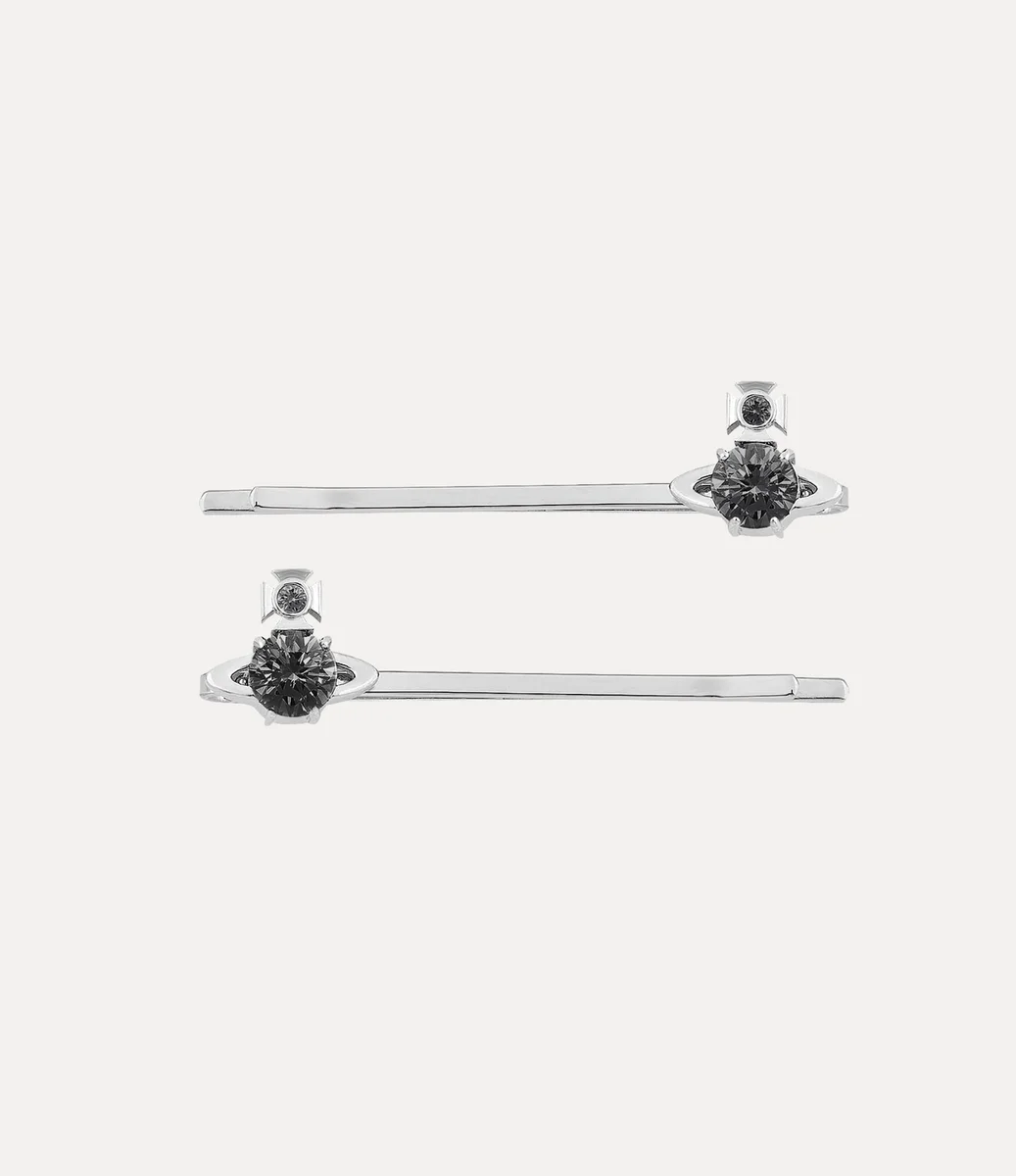 Vivienne Westwood Joaquina Bobby pins are offered as a set of two and features the signature orb motif adorned with crystal accents finished in silver-tones.