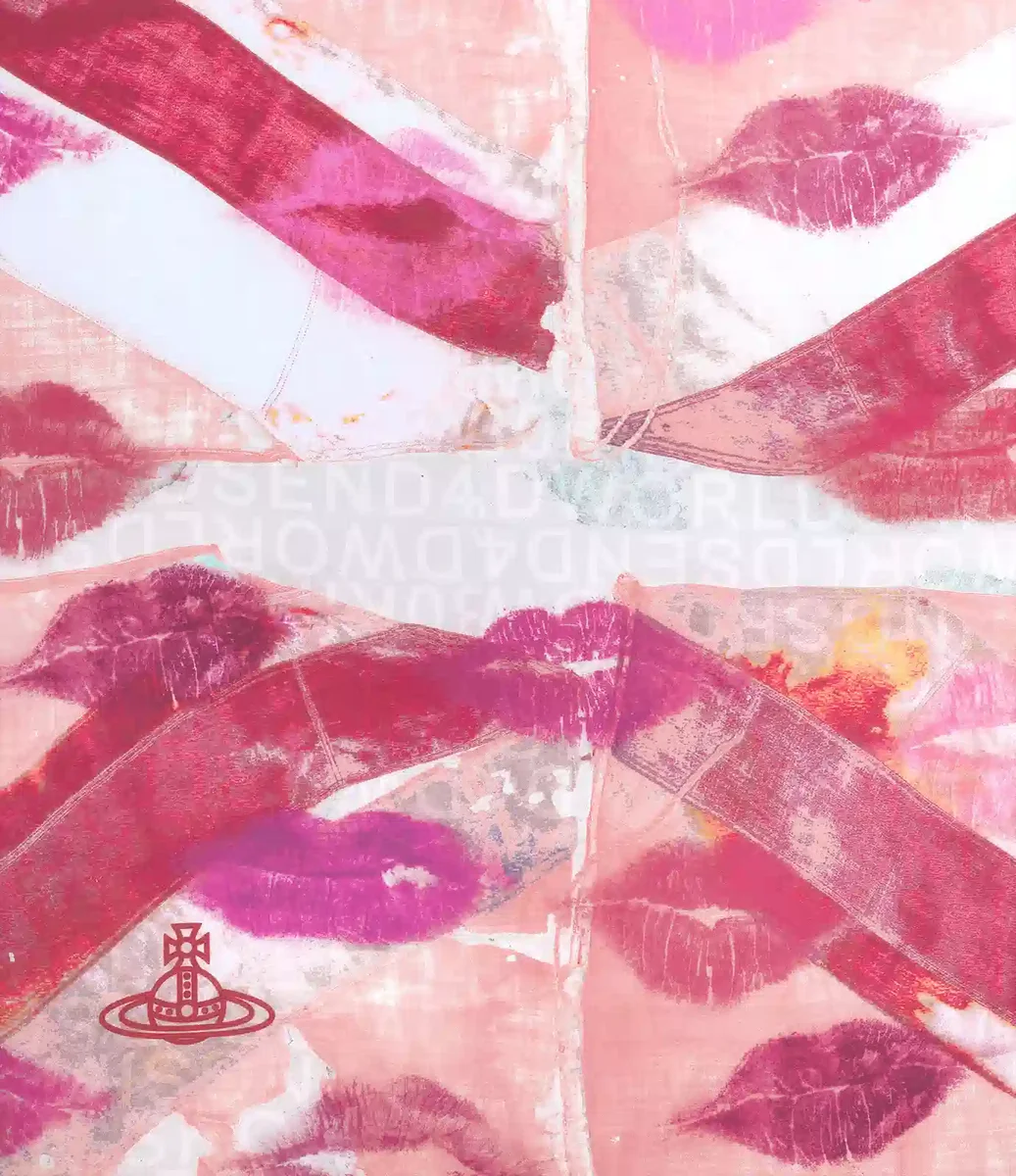 Our Union Jack Kiss square features this season’s ‘Kisses’ artwork, inspired by the packaging of the house’s iconic Boudoir perfume. The square-shaped design incorporates the Union Jack, first seen on the bridal gown in the Autumn-Winter 2002 Anglophilia collection.
