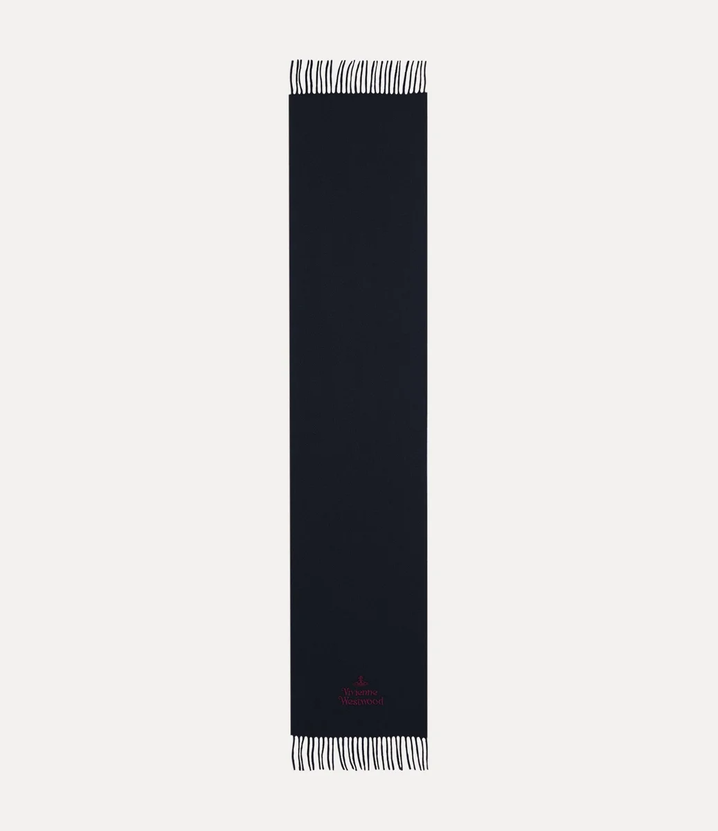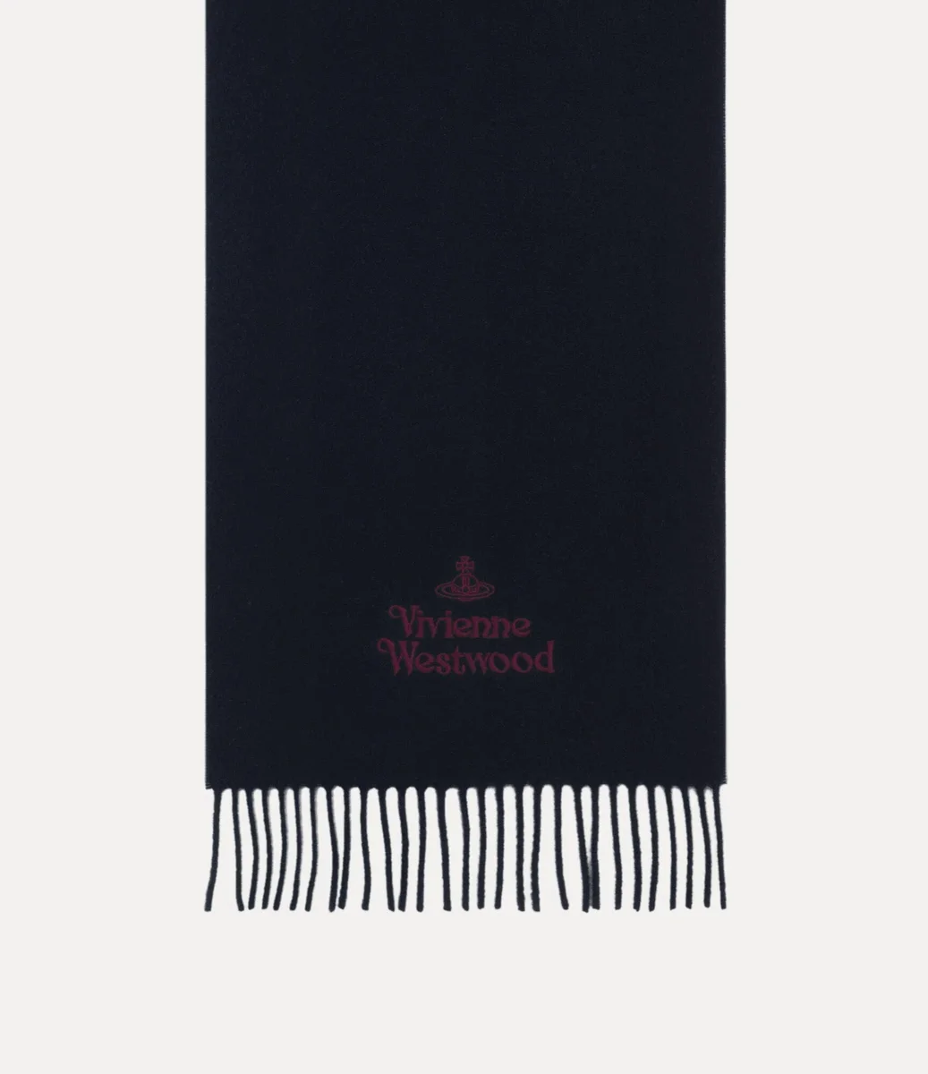 Vivienne Westwood Embroidered scarf features a soft woollen silhouette, branded with the house’s lettering motif at the bottom of the design.