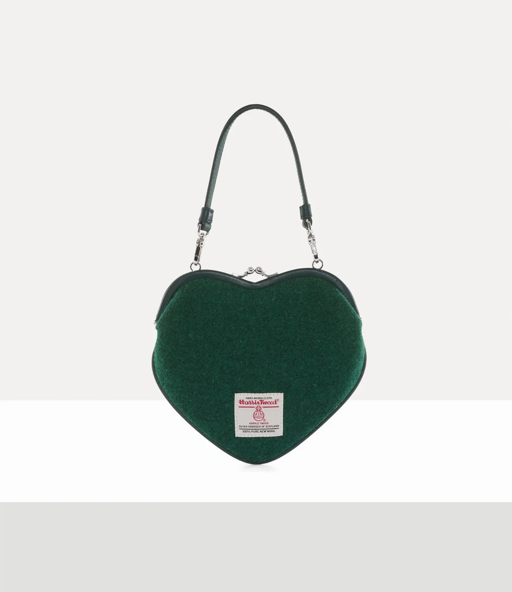Vivienne Westwood Belle Heart Frame purse, in wool features the classic heart-shaped silhouette, finished with our orb motif reinterpreted a tufted finish.