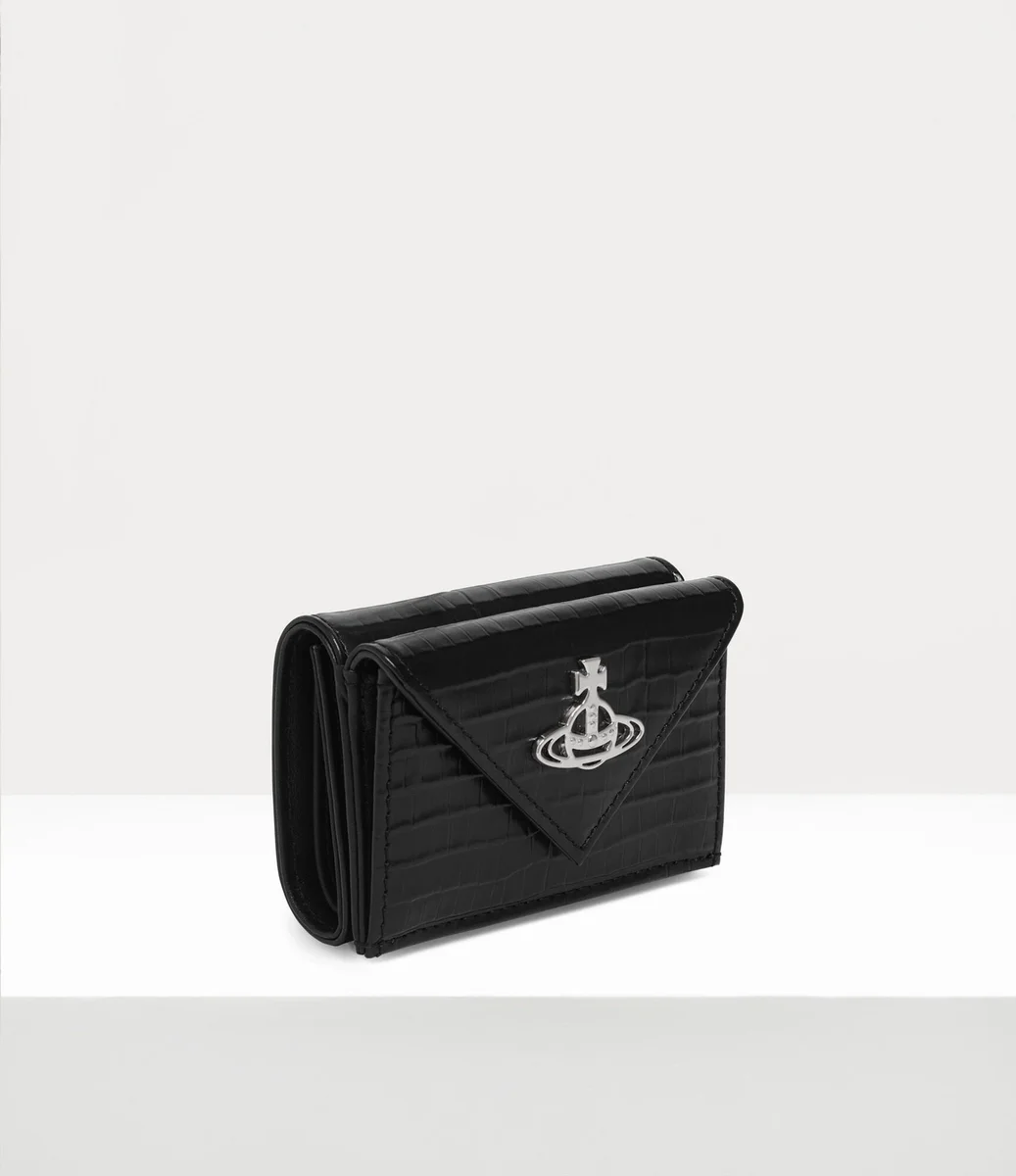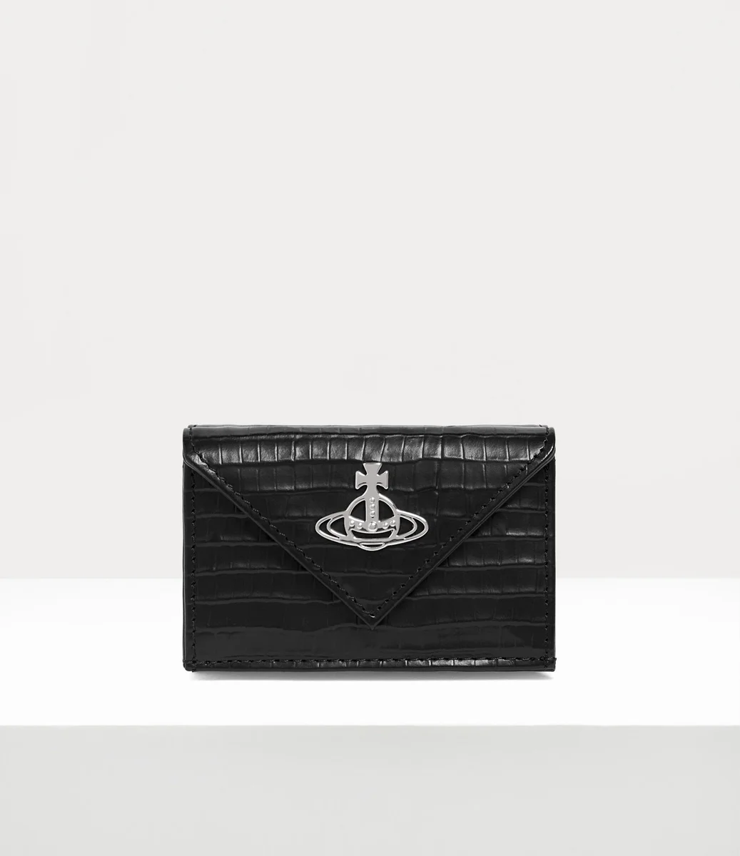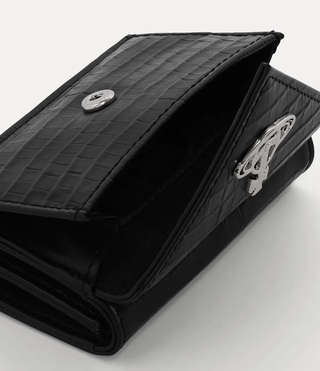 Our Envelope billfold is reimagined in this season’s mini croc-effect embossed leather. Finished with the house’s signature metal ‘Line orb’ motif on the press-stud fastening, the piece embodies Vivienne’s vision of propelling tradition into the future.