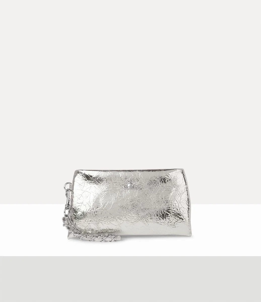 Vivienne Westwood Sadie wristlet pouch is crafted from metallic crinkle-effect leather, complete with a rectangular shape.