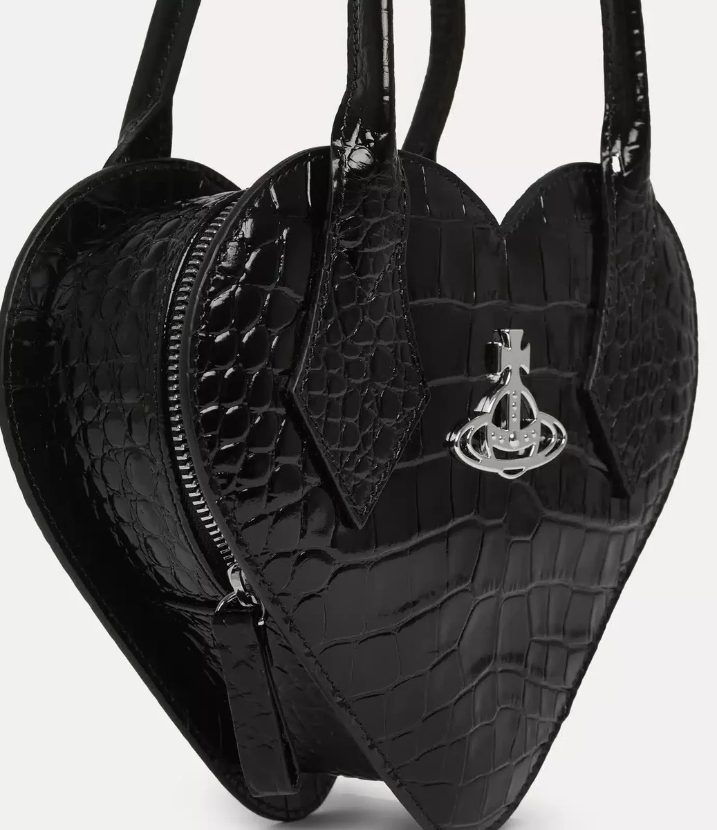 The silhouette of the Josephine Heart Crossbody bag revives the house’s signature heart-shaped motif. The piece features croc-effect embossed details, complete with a single-compartment design that closes with a zip-around fastening. Our house’s orb emblem is offered on the front panel – synonymous with Vivienne’s vision of launching tradition into the future.