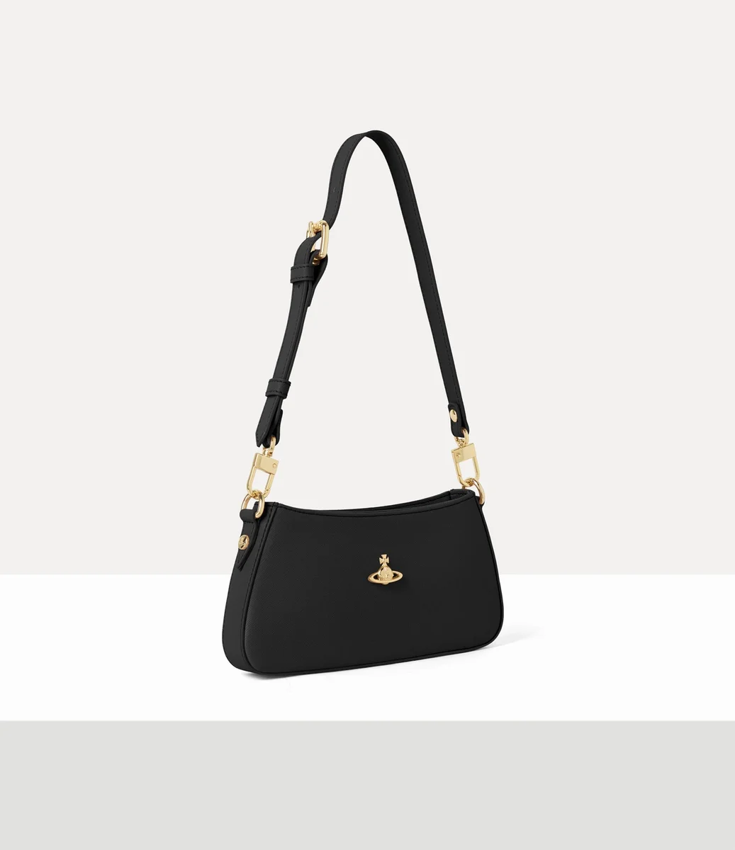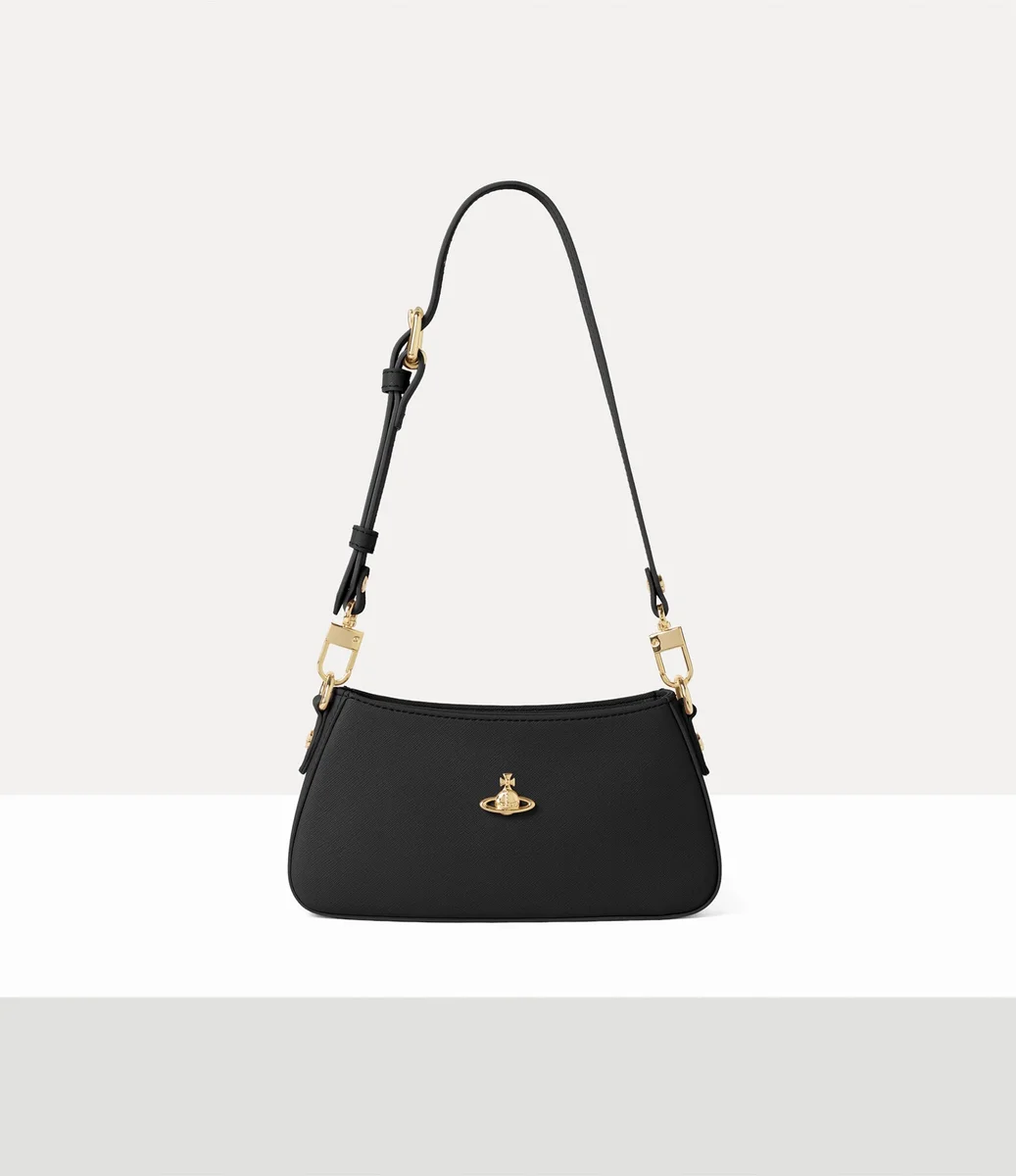 Vivienne Westwood Tasha Shoulder phone bag in PU leather features a saffiano-embossed finish, complete with the house’s signature brass hardware.