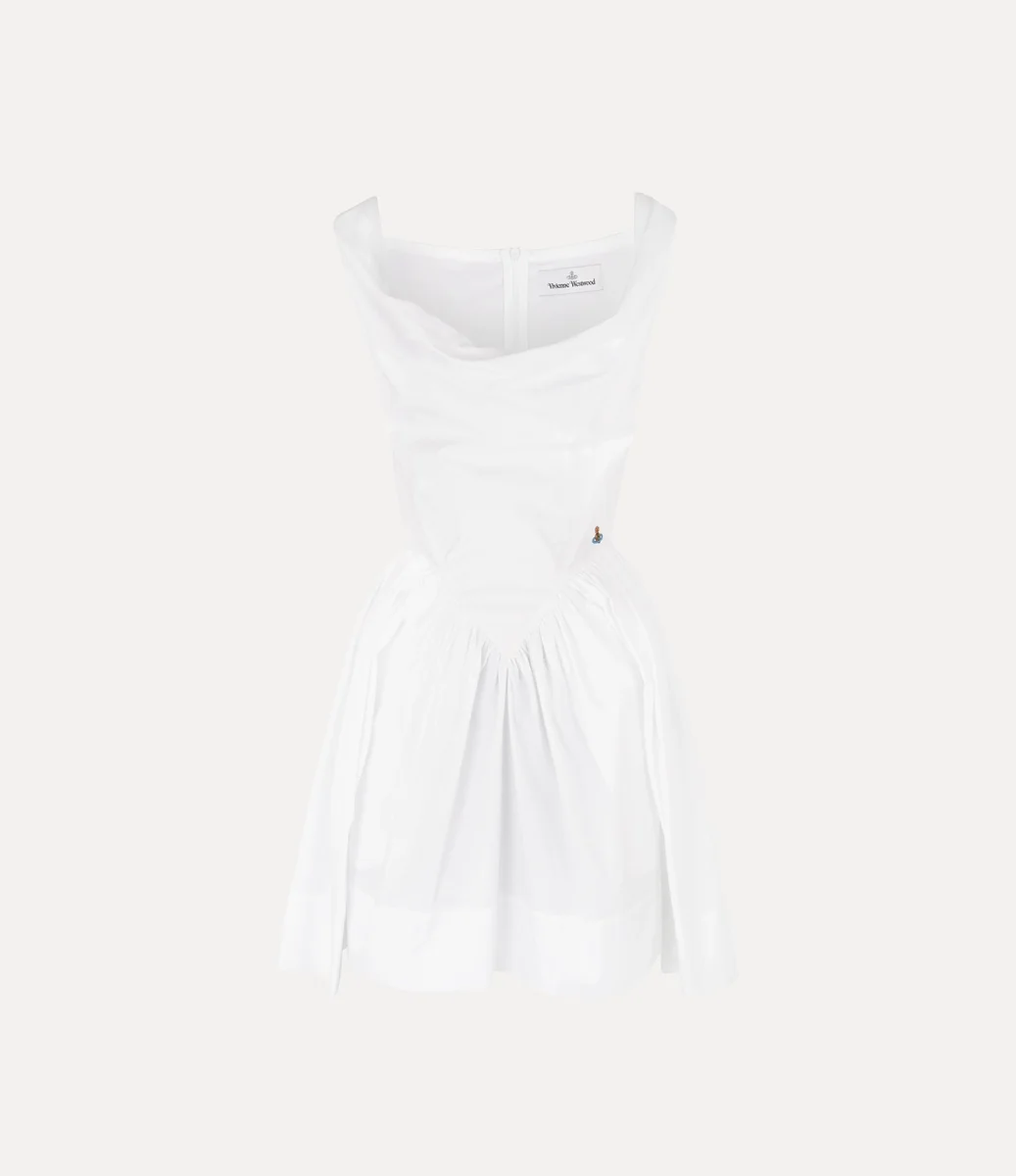Vivienne Westwood Mini Sunday dress in cotton features a mini-length finish this season, complete with a corset-inspired silhouette and an orb motif at the hip.