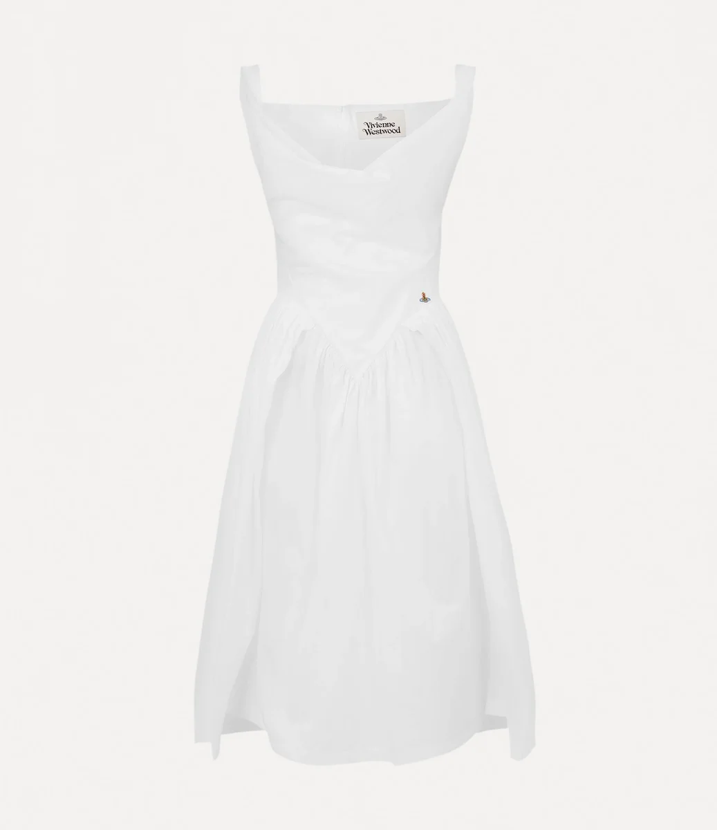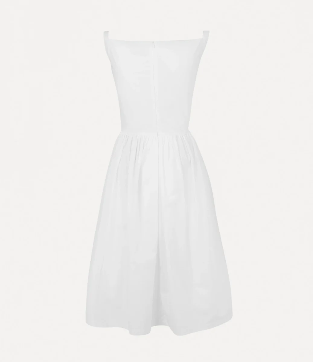 Our Sunday dress has been revived this season, first appearing in the Vivienne Westwood Spring-Summer 1997 ‘Vive La Bagatelle’ collection. Drawing inspiration from high-society women of 18th-century salon culture, this piece showcases a sculpted, corset-inspired silhouette that falls into a midi-length finish, complete with our embroidered orb at the hip.