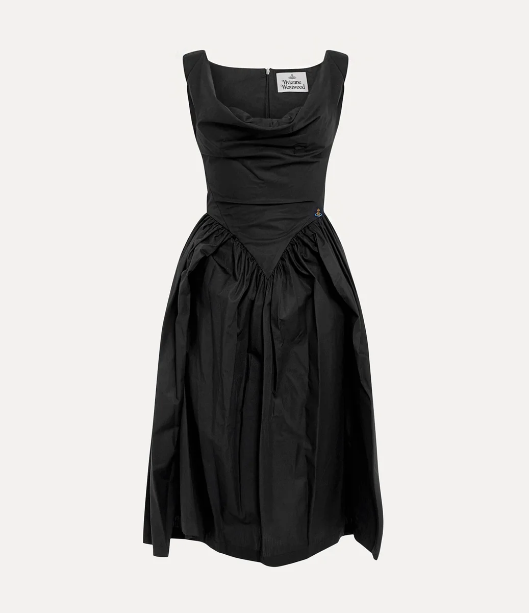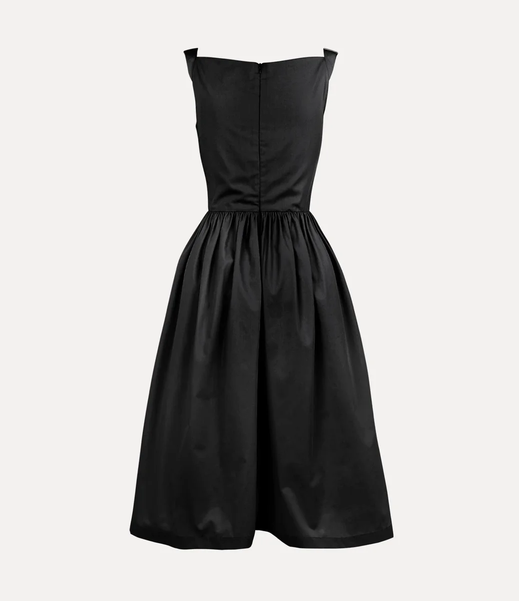 Our Sunday dress has been revived this season, first appearing in the Vivienne Westwood Spring-Summer 1997 ‘Vive La Bagatelle’ collection. Drawing inspiration from high-society women of 18th-century salon culture, this piece showcases a sculpted, corset-inspired silhouette that falls into a midi-length finish, complete with our embroidered orb at the hip.