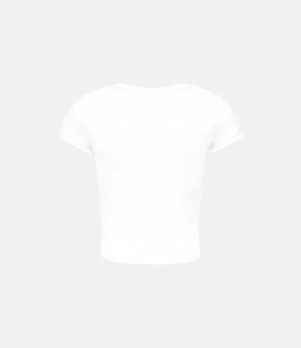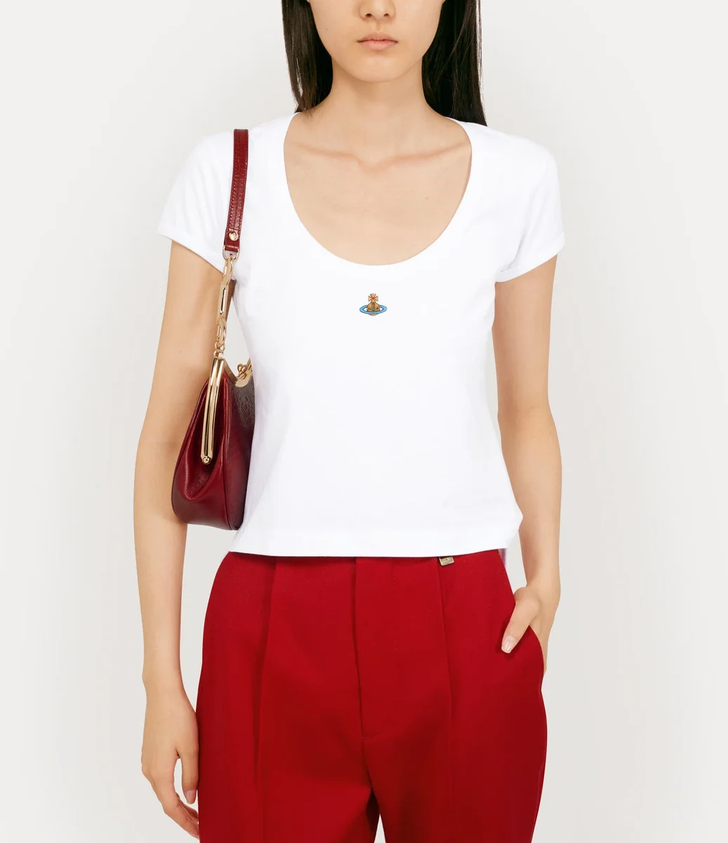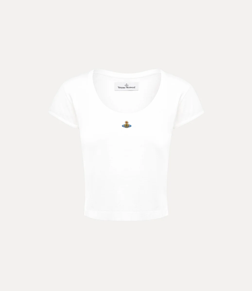 Vivienne Westwood Micro Lollo t-shirt features a cropped cotton silhouette, with short sleeves and a low scoop neckline, complete with our orb embroidery.