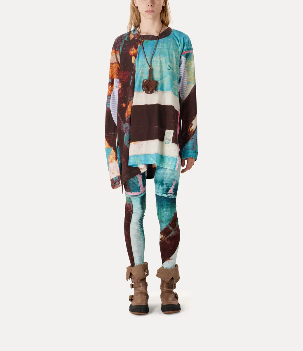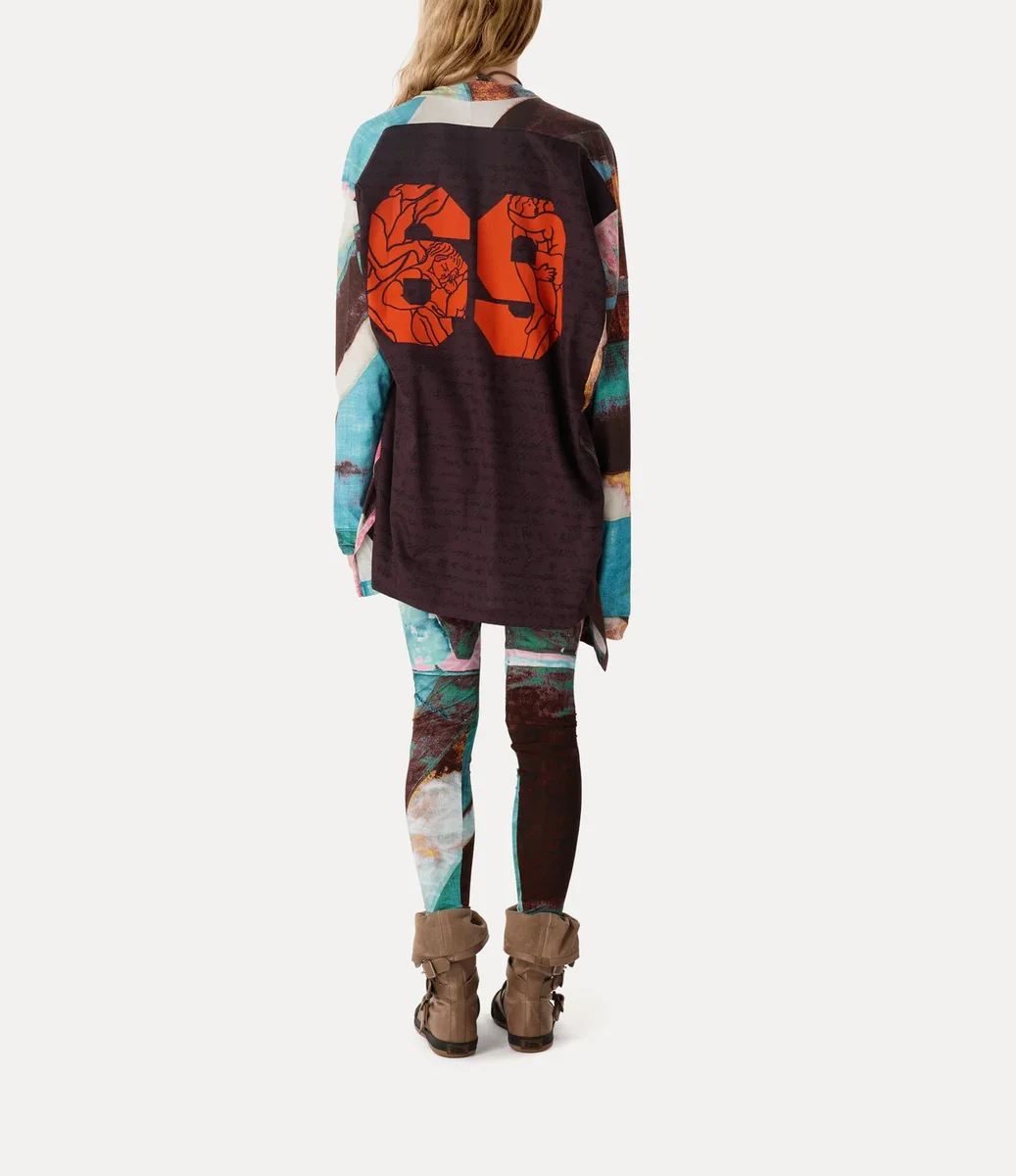The Worlds End Drunken top is crafted from soft jersey cotton and features this season’s vibrant multi-coloured print. Cut with long sleeves and an asymmetrical silhouette, it’s detailed with twisted seams at the neckline and cuffs, complete with the ‘Arm and Cutlass’ archive embroidery at the chest.