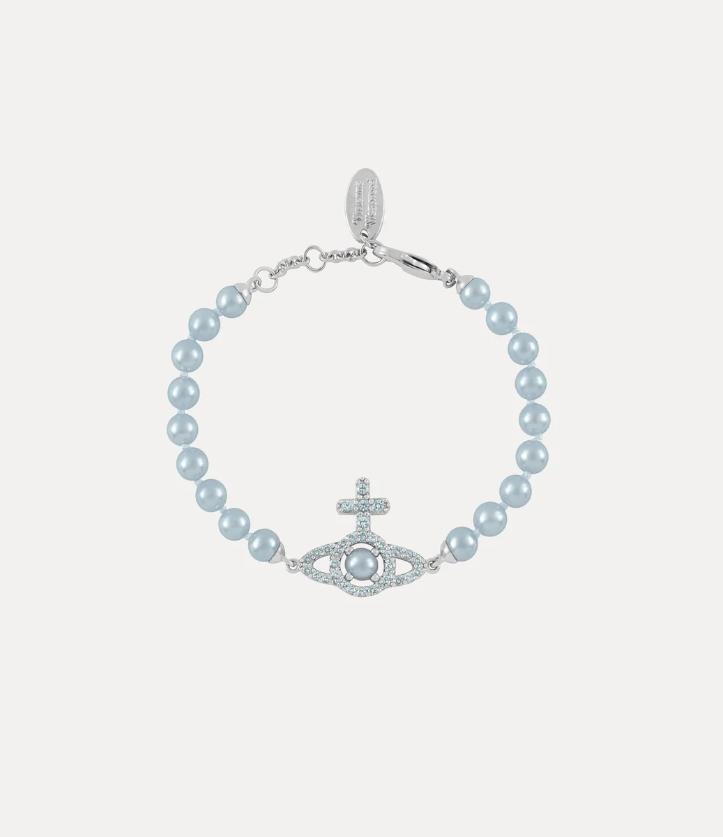 Vivienne Westwood Olympia Pearl bracelet features a row of glass-based pearls, with a silver-tone orb at its center – inspired by the house’s signature motif.