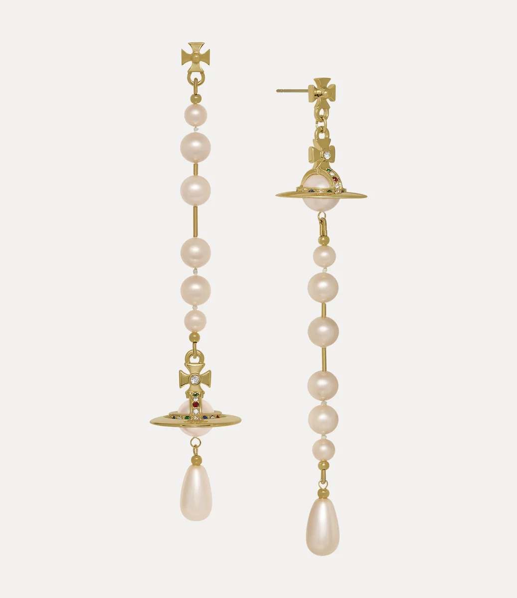 Vivienne Westwood first introduced the Broken Pearl earrings in the Autumn-Winter 2005-2006 ‘Propaganda’ collection, encapsulating the house’s punk-inspired aesthetic. These earrings showcase an uneven, asymmetrical design, reflecting the signature ‘broken’ motif of the original pearl necklace.