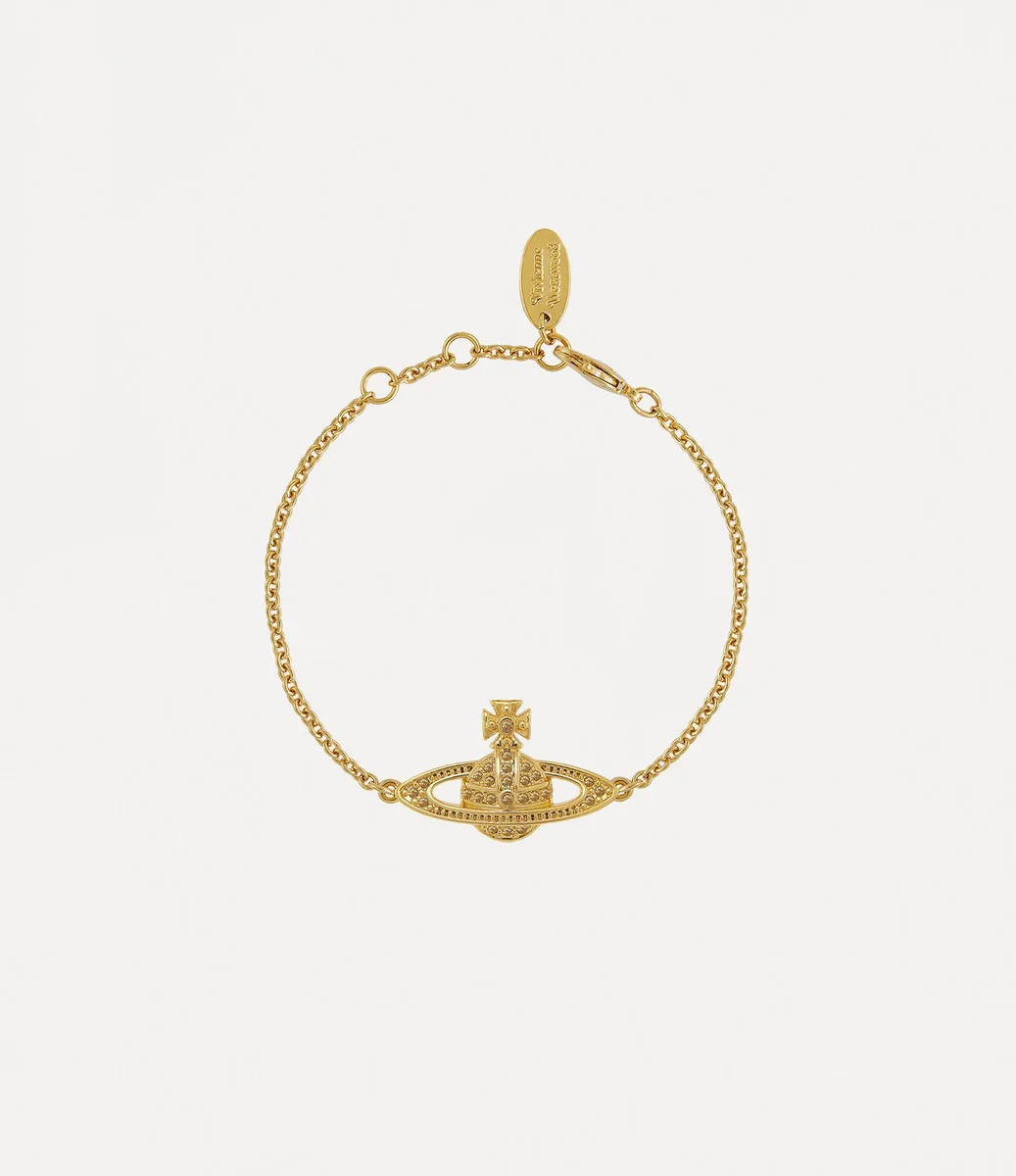 The Mini Bas Relief Chain bracelet is made from gold-tone metal and features an orb-shaped charm in the centre of the trace chain.
