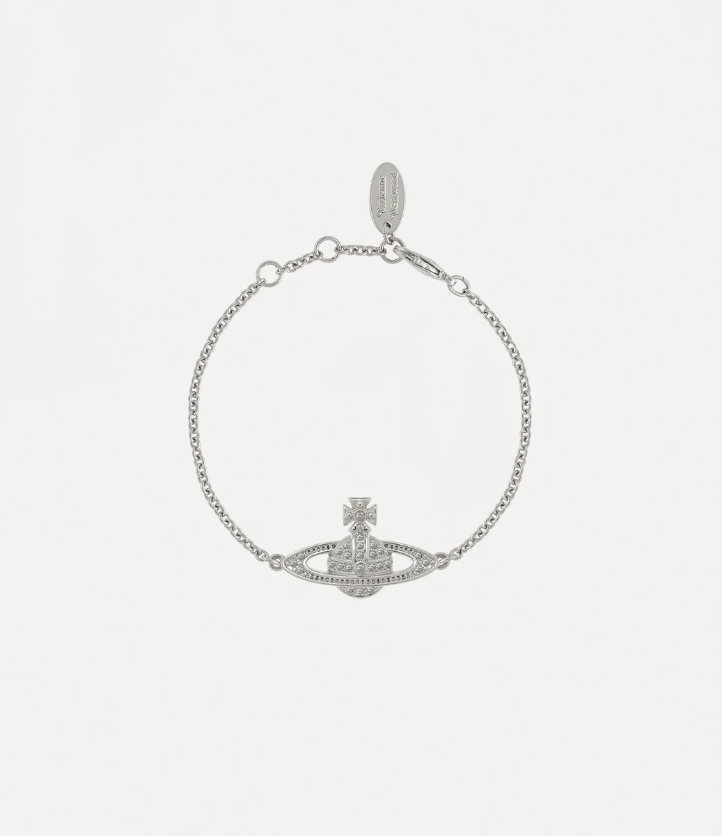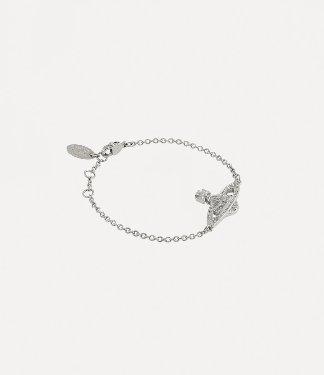 Our Mini Bas Relief Chain bracelet features a distinct silver-tone orb at the centre, inspired by the house’s signature motif. Encrusted with pavé-set white crystals, the piece is finished with a letter-engraved oval tag at the secure lobster-clasp fastening.