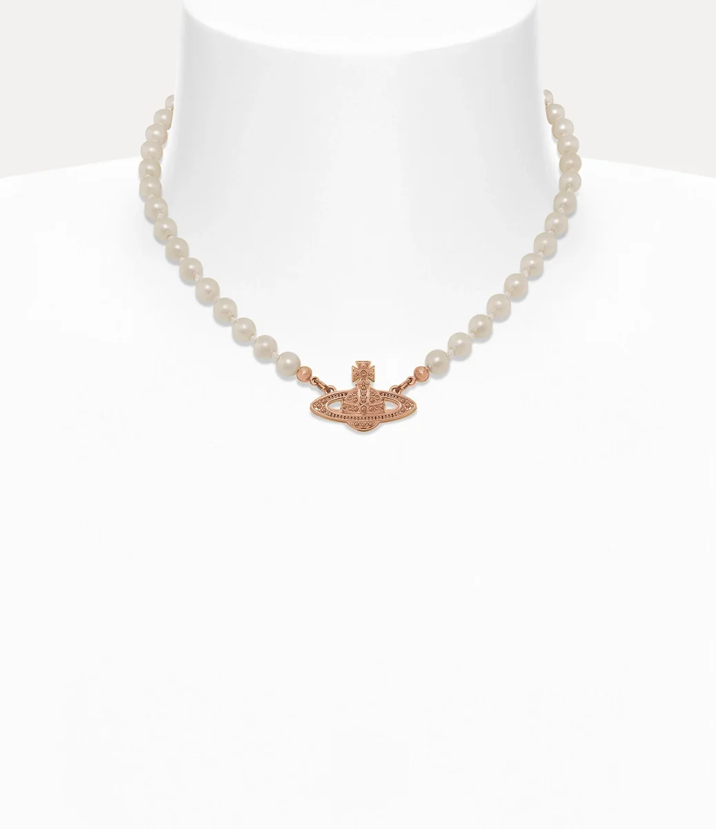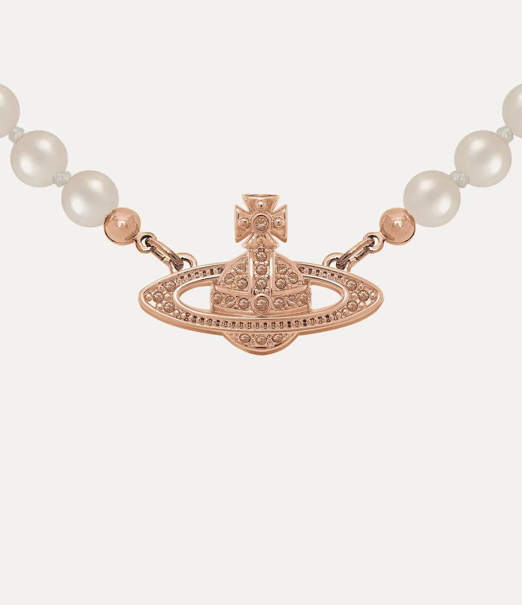 Vivienne Westwood Mini Bas Relief Pearl choker features pearl detailing, complete with the house’s signature orb motif at the centre of the design.