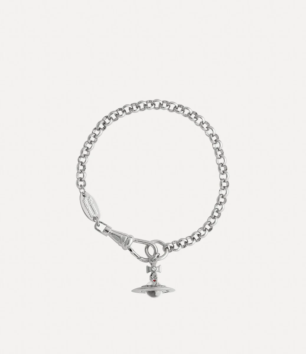 Our New Petite Orb bracelet features our signature three-dimensional orb charm in the centre of the design, embodying the house’s ethos of launching the past into the future. This season, the piece is adorned with multi-coloured crystal details, complete with a silver-tone plated cable chain.
