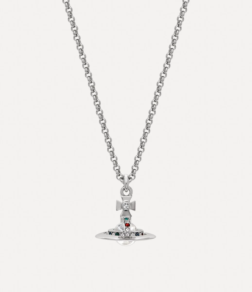 Vivienne Westwood New Petite Orb Pendant necklace with silver-tone plating features our three-dimensional orb, encrusted with multi-coloured crystal details.