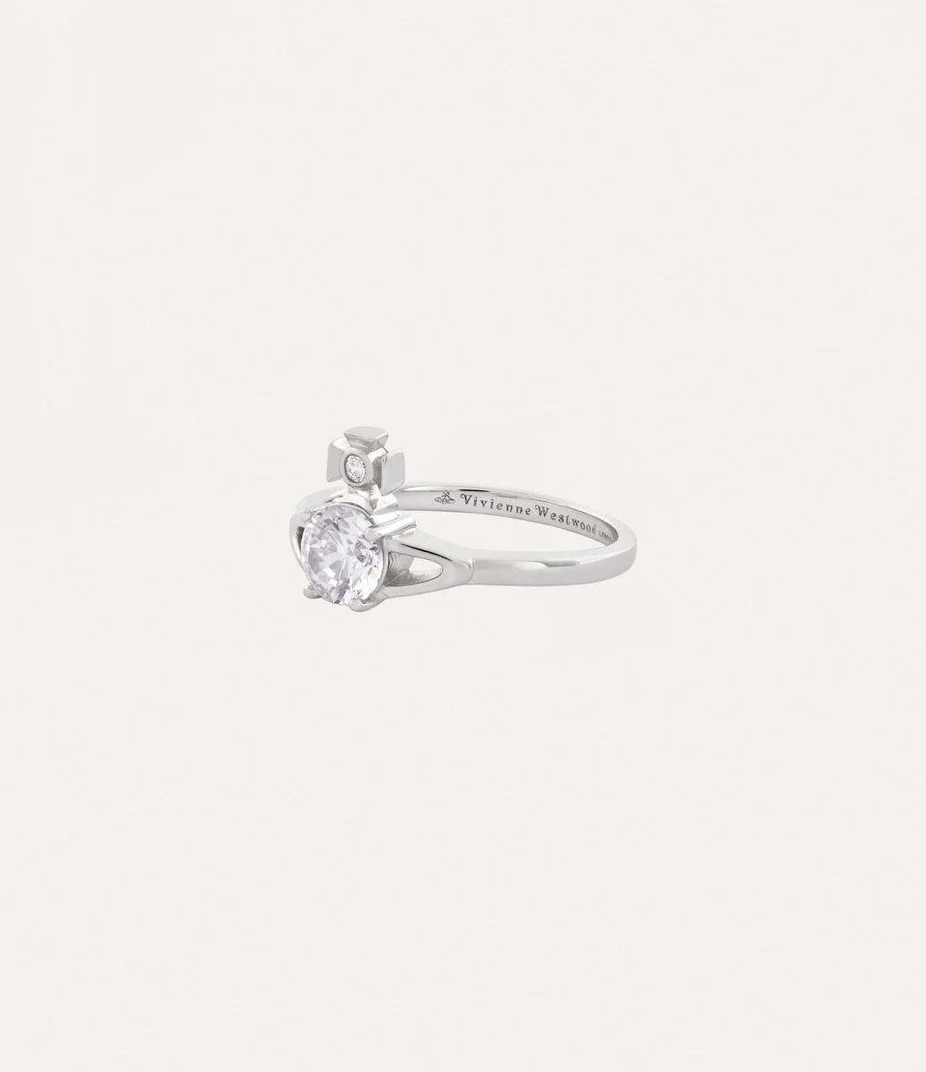 Our Reina Petite ring in recycled silver features an orb motif at the face, borrowing from the house’s signature orb emblem – synonymous with Vivienne’s vision of taking tradition into the future. The delicate band is engraved with an orb and the classic ‘Vivienne Westwood’ lettering motif on the inner band.