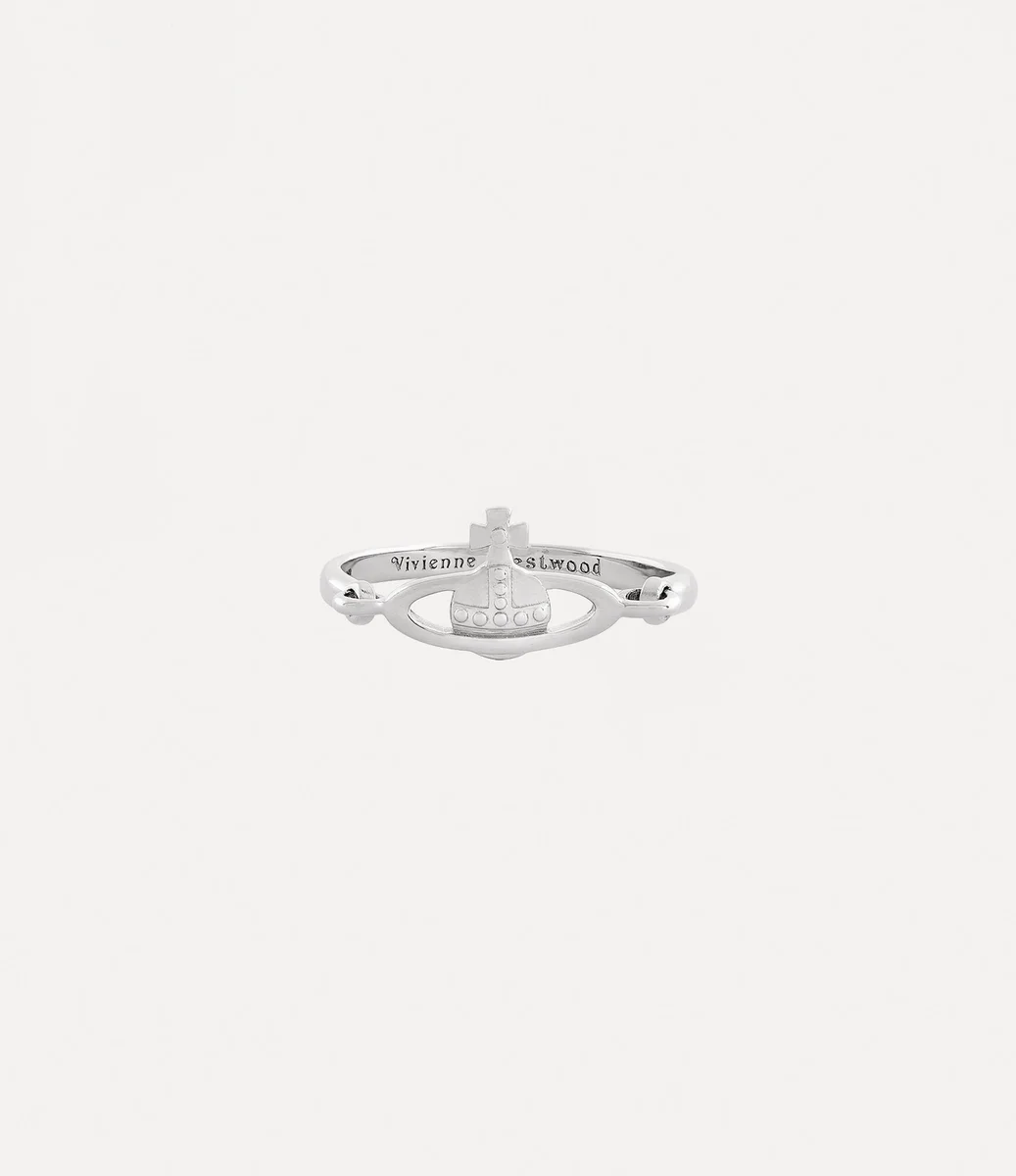 Our Vendome ring in platinum-plated silver features a delicate banded design, complete with a cut out orb motif on the face that is able to rotate on its hinges – synonymous with Vivienne’s vision of taking tradition into the future. To finish, the piece is inscribed with our house’s signature typography motif on the inner side.