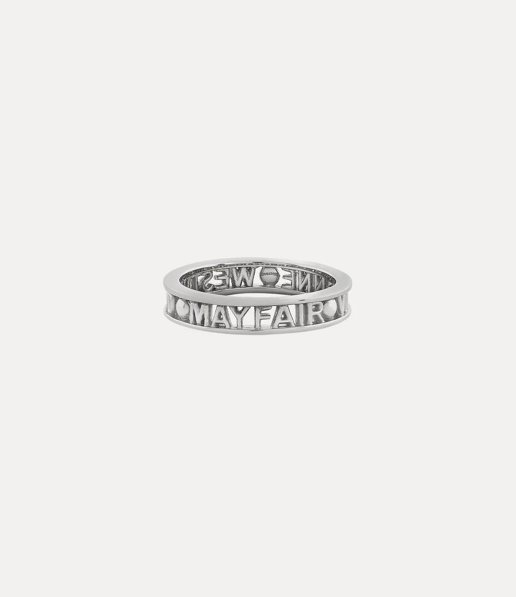 Our Westminster ring is named after the esteemed Westminster district in London, renowned for its rich history and cultural importance. The piece receives a silhouette crafted from recycled silver, adorned with a platinum-tone finish that elegantly encircles the slim lettering logo on the band.