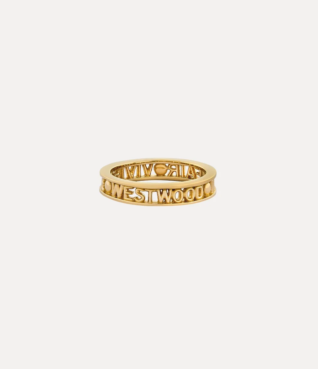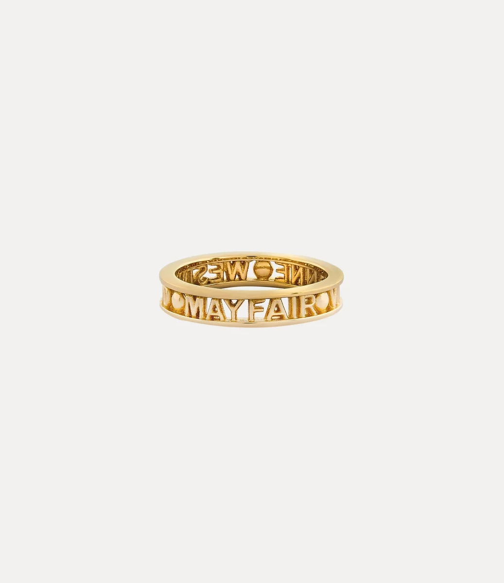 The Vivienne Westwood Westminster ring is named after the esteemed Westminster district in London, renowned for its rich history and cultural importance. The piece receives a silhouette crafted from recycled silver, adorned with a gold-tone finish that elegantly encircles the slim lettering logo on the band.