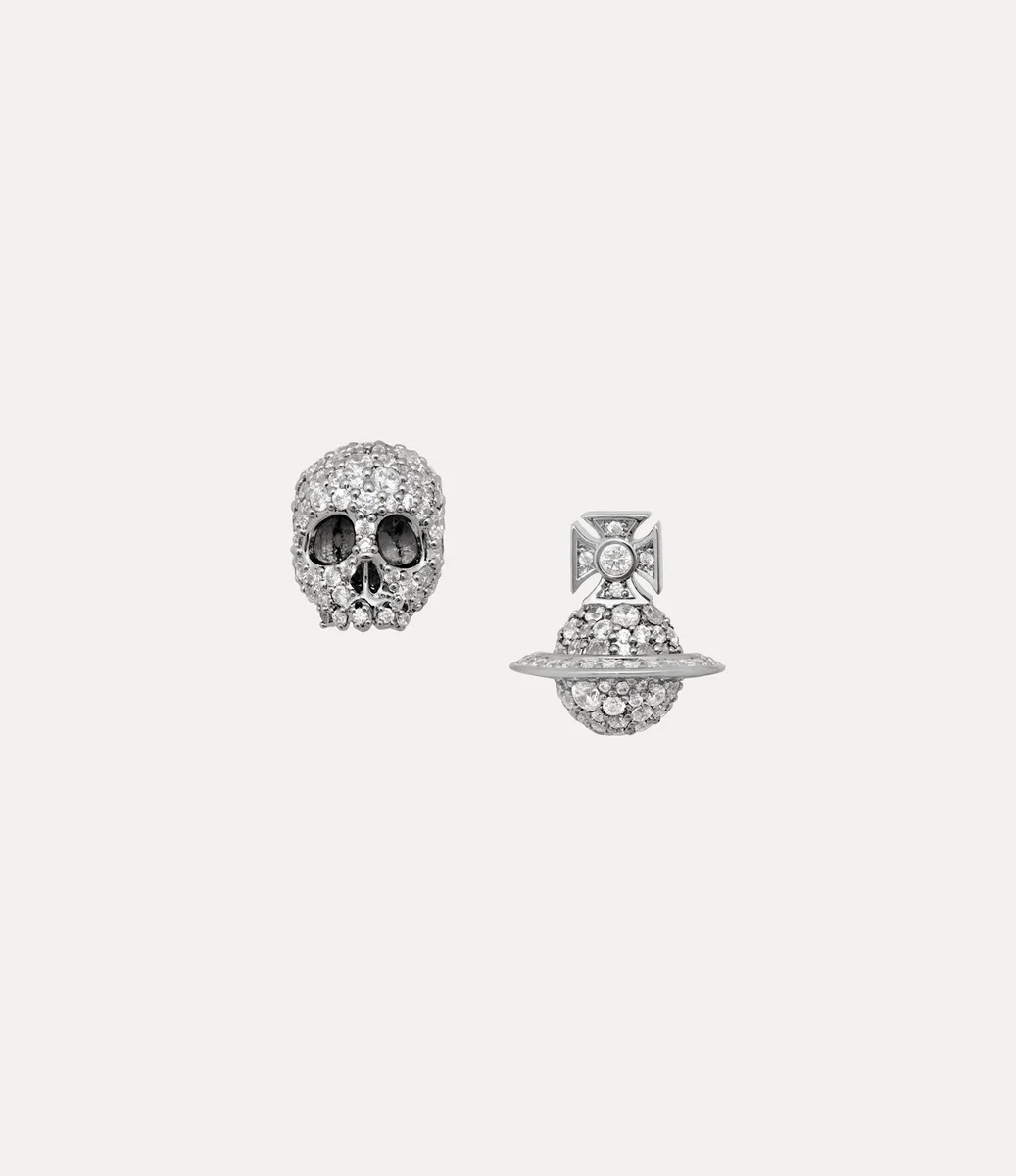 Vivienne Westwood Circe Stud earrings feature an asymmetric design, complete with a silver-tone skull and orb motif, encrusted with clear pavé-set crystals.