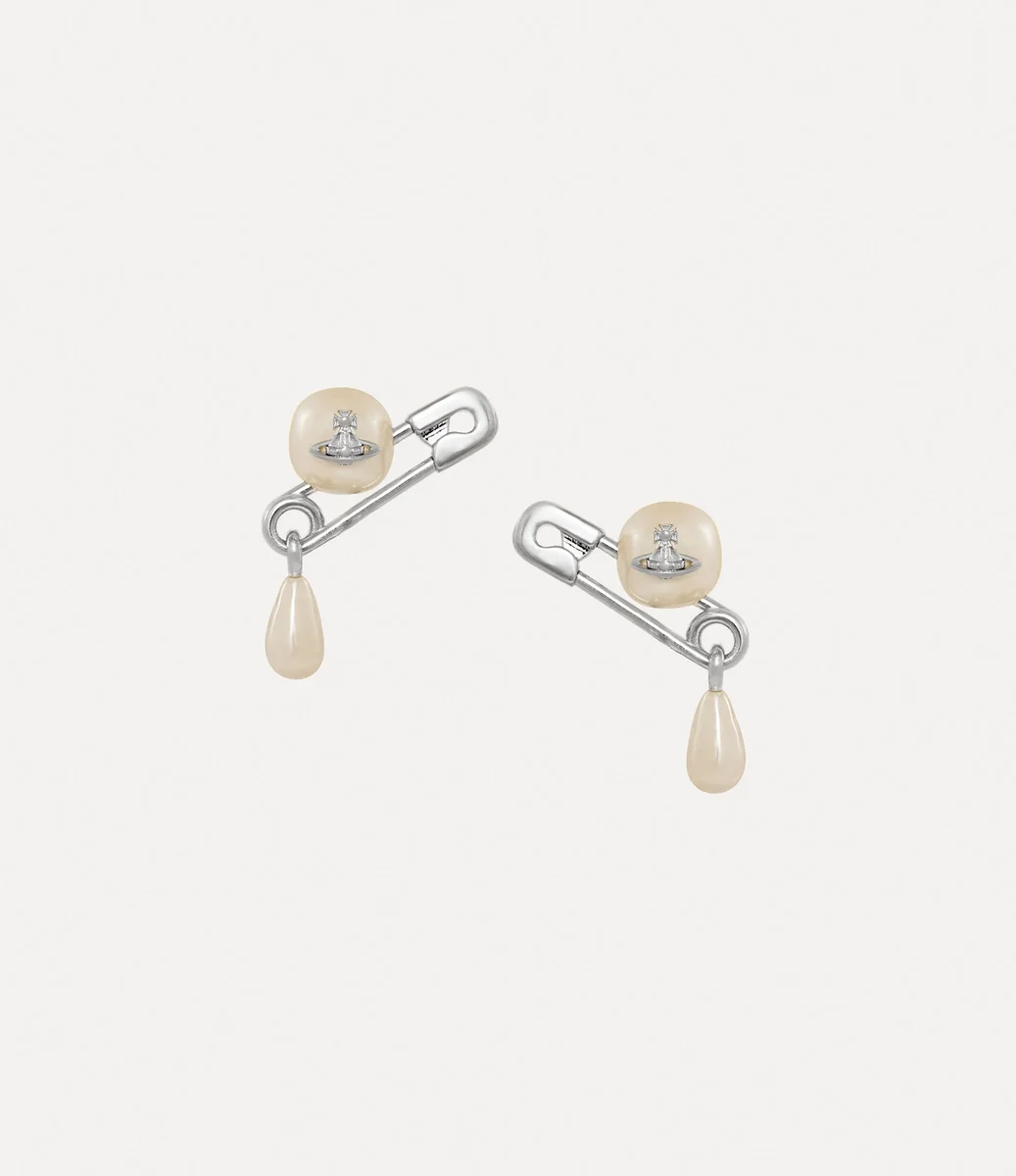 Our silver-toned Claude Small Stud earrings feature a rounded pearl with a central orb detail, enhanced by a classic safety pin motif that captures the house’s punk aesthetic. The design offers a delicate baroque pearl drop, complete with our customised butterfly-back fastenings.