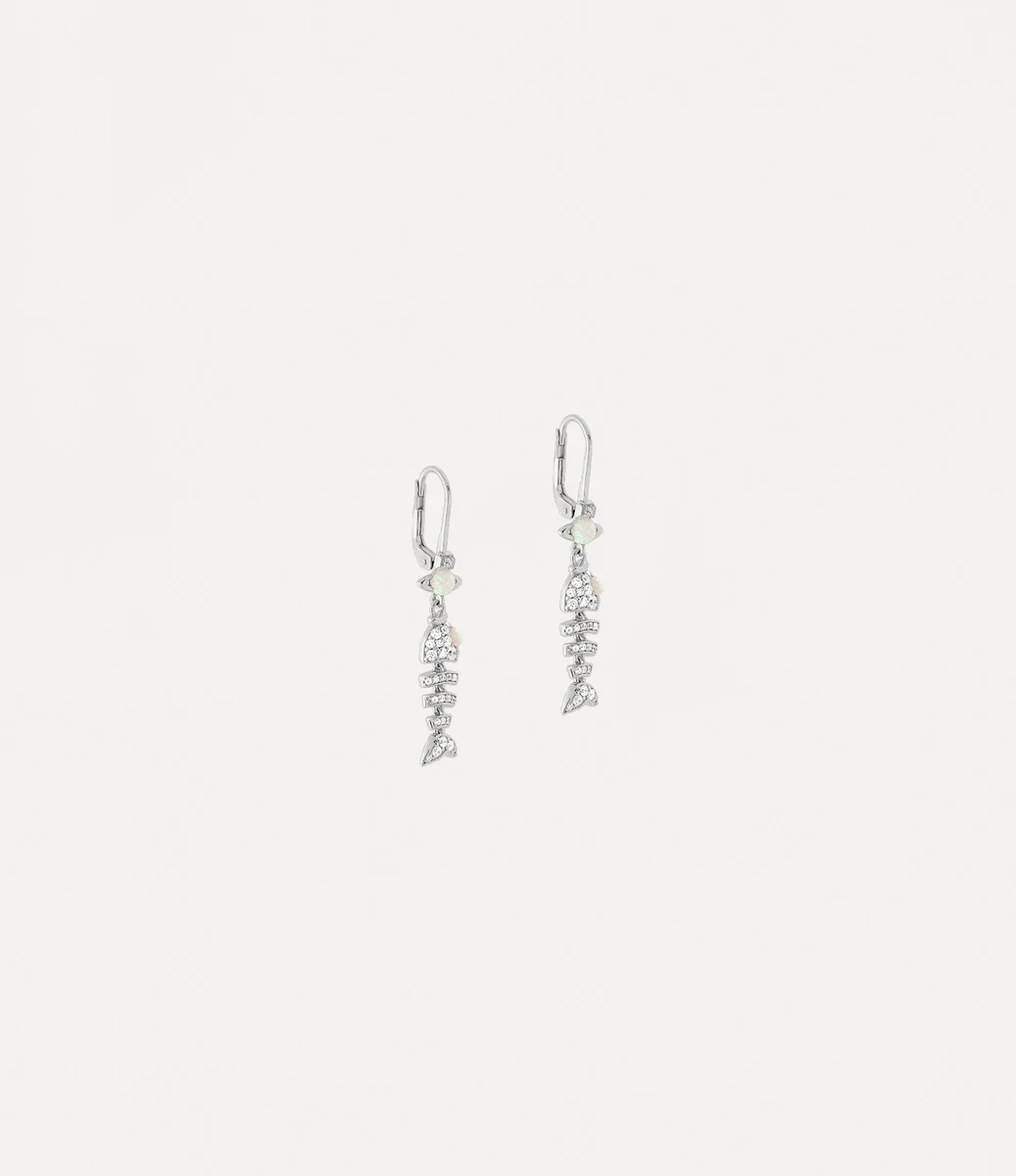 The fish bone motif has become a signature icon of the house, having appeared in many collections throughout our history. The Lyall earrings revive the motif, adorned with white crystal details and opalised gemstones, finished in platinum-plated silver.