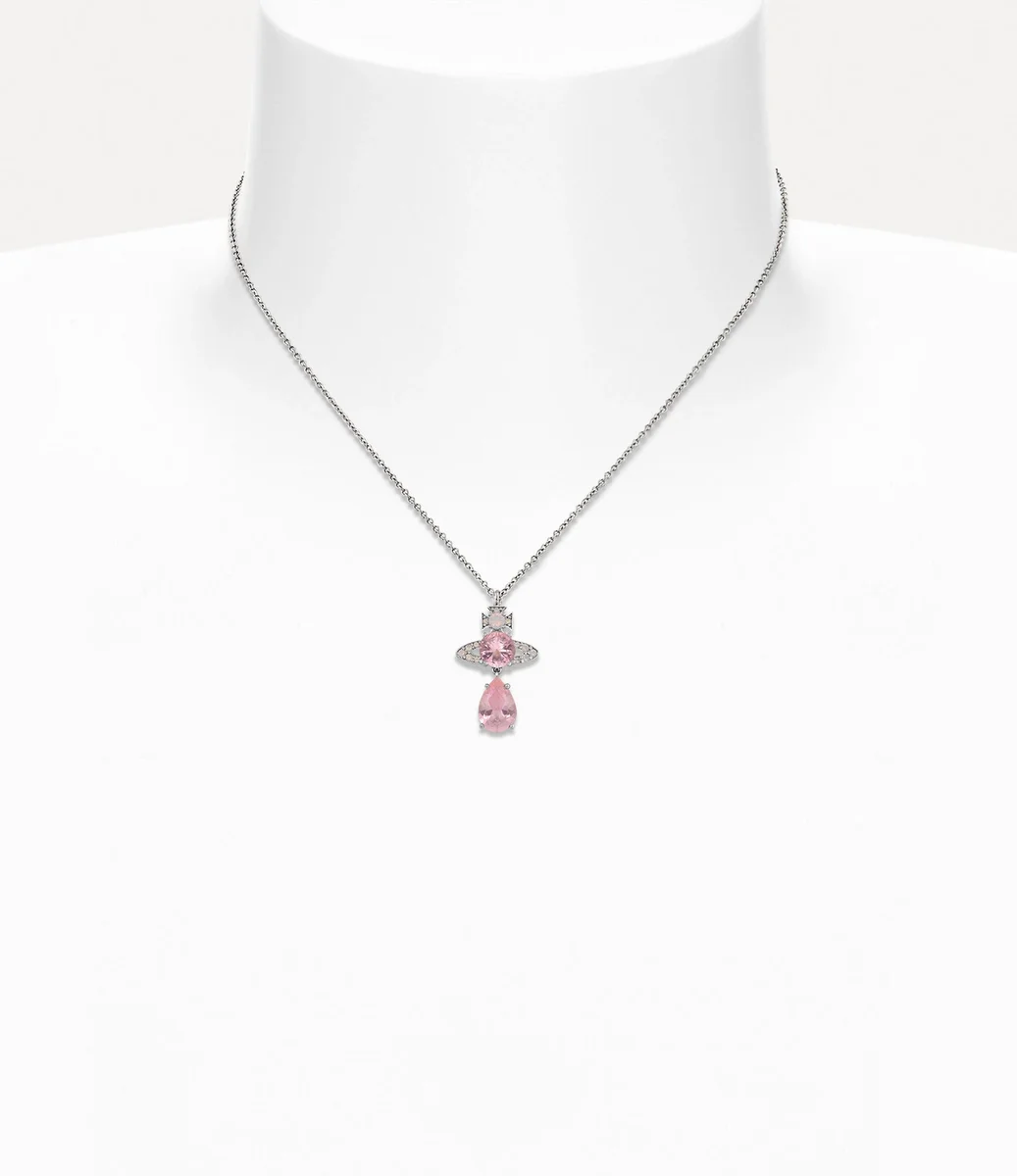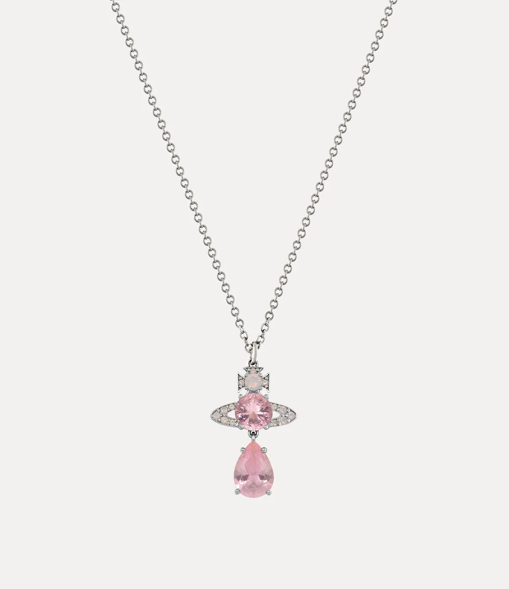 Our Ismene Drop Pendant necklace has been updated this season with pink-coloured crystal details, complete with an orb pendant that descends into a pear-shaped crystal. The piece fastens with a secure lobster closure, branded with a letter-embossed oval tag to finish.
