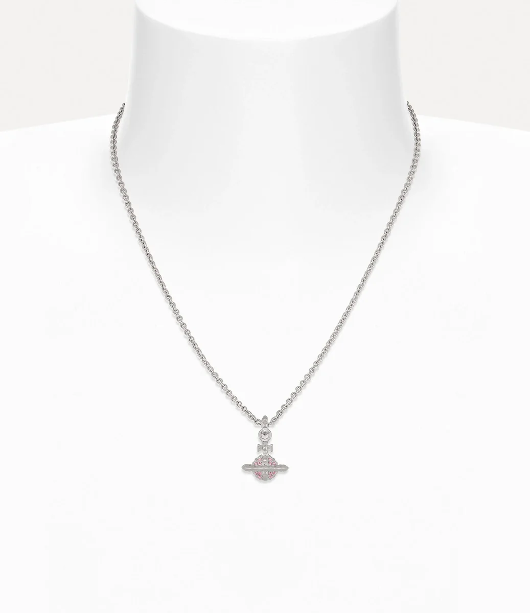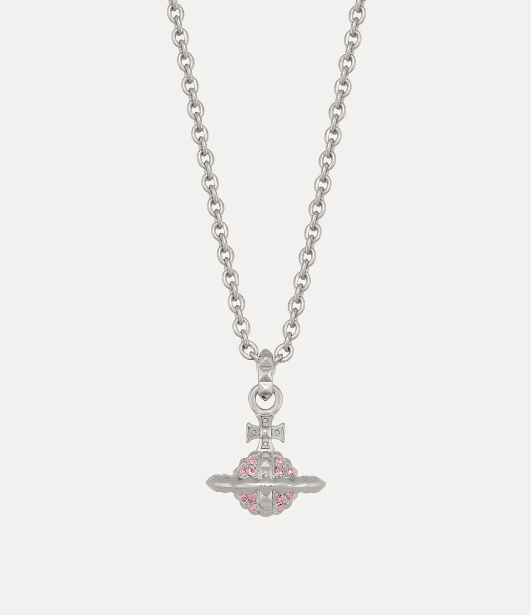 Vivienne Westwood Mayfair Small Orb Pendant necklace features silver-tone plating, light rose-coloured crystals embellishment and pyramid-stud details.