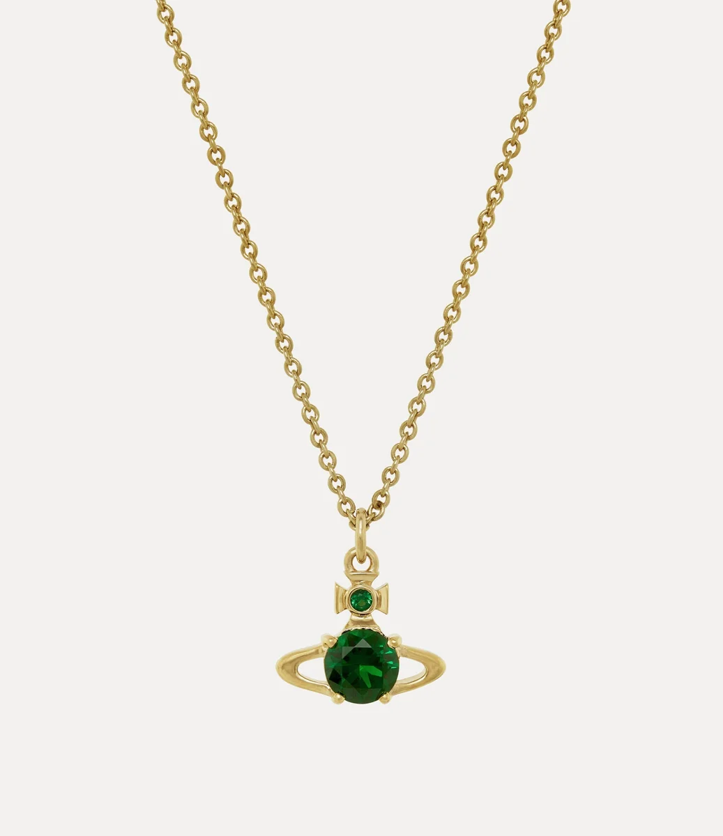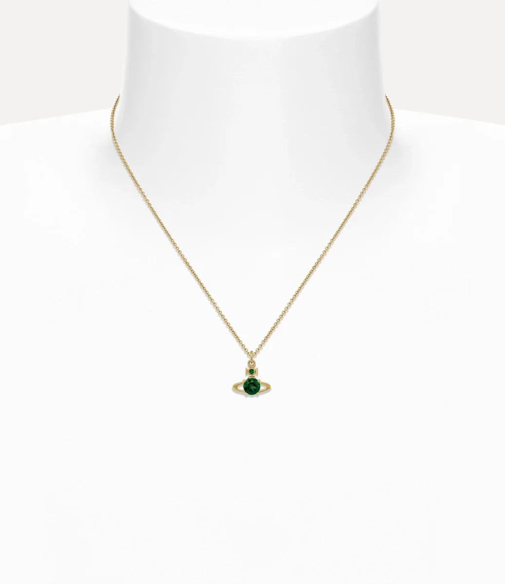 Vivienne Westwood Reina Pendant necklace in gold-tone plating features the classic orb design, encrusted with green crystals.