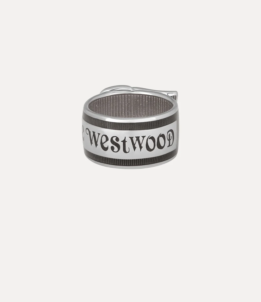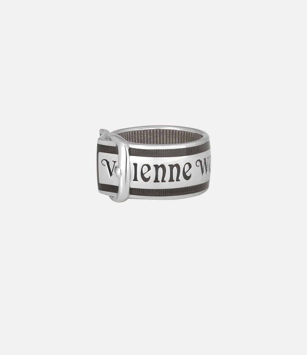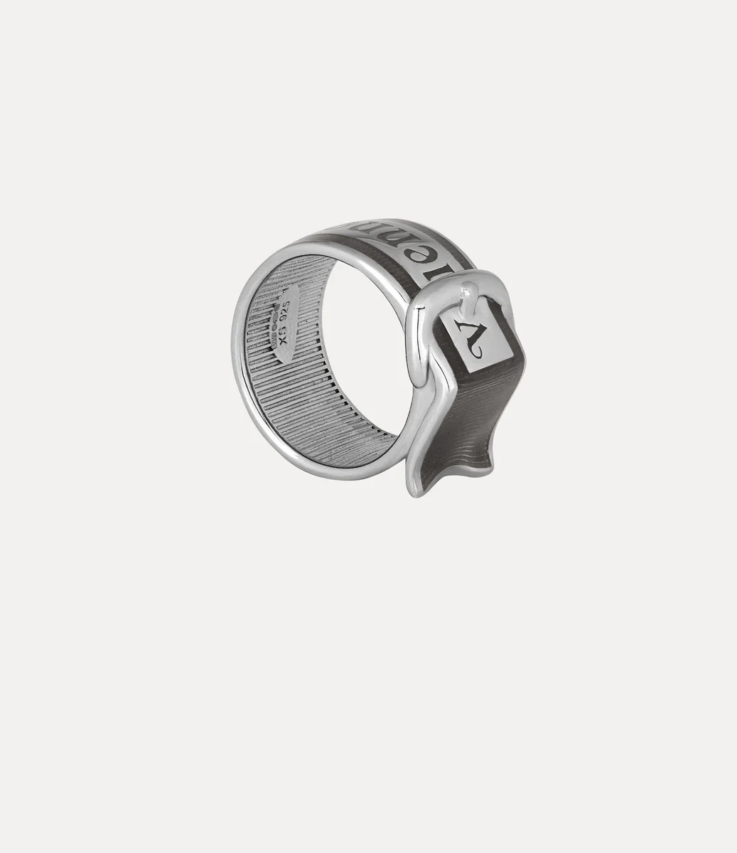 The Enamel Belt ring reimagines an archival house design in platinum-tone plating, featuring hand-painted enamel applied across the ribbed band and over the ‘Vivienne Westwood’ lettering. Finished with a sculpted buckle, the piece takes the form of our signature belt silhouette.