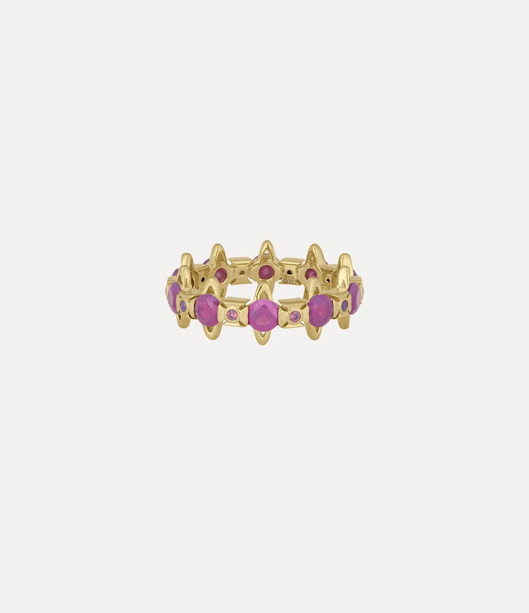 Vivienne Westwood Warwick ring offers a sleek recycled silver design, featuring a band of interconnected orb details in a polished, gold-tone plating.