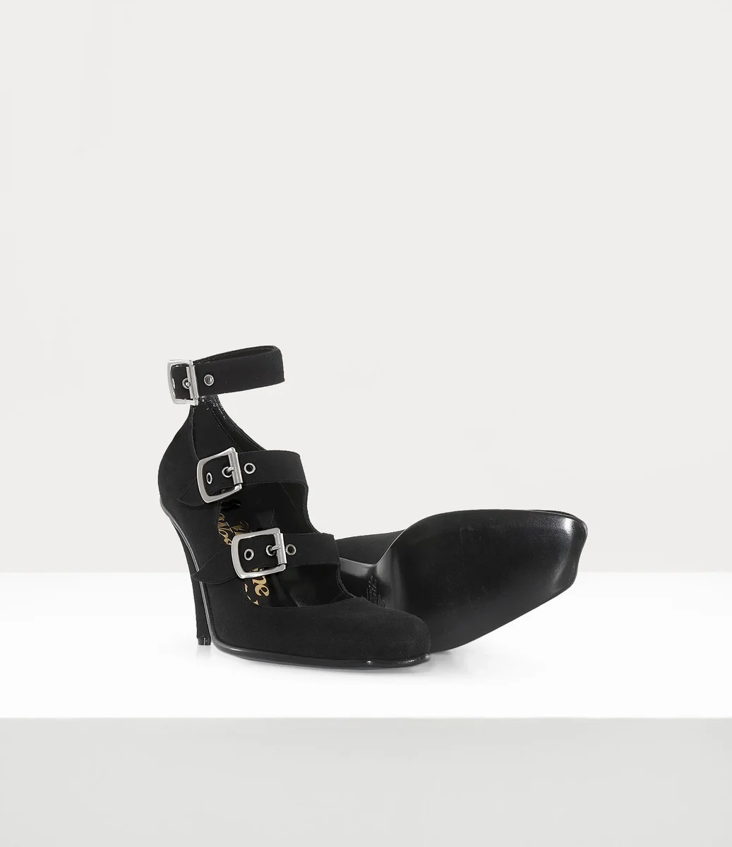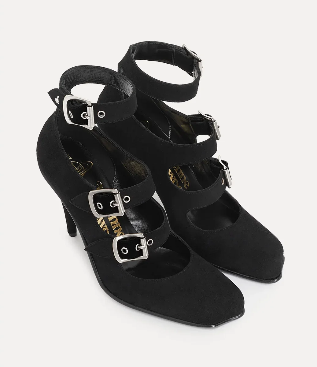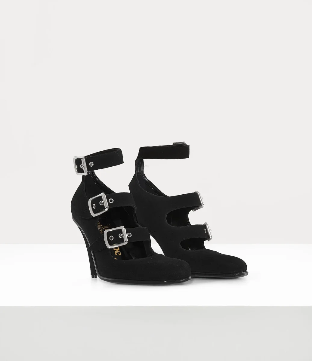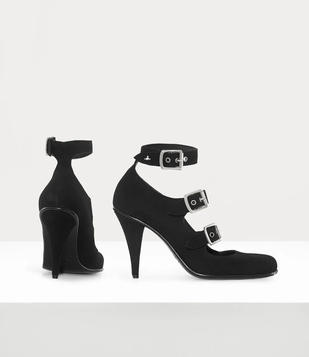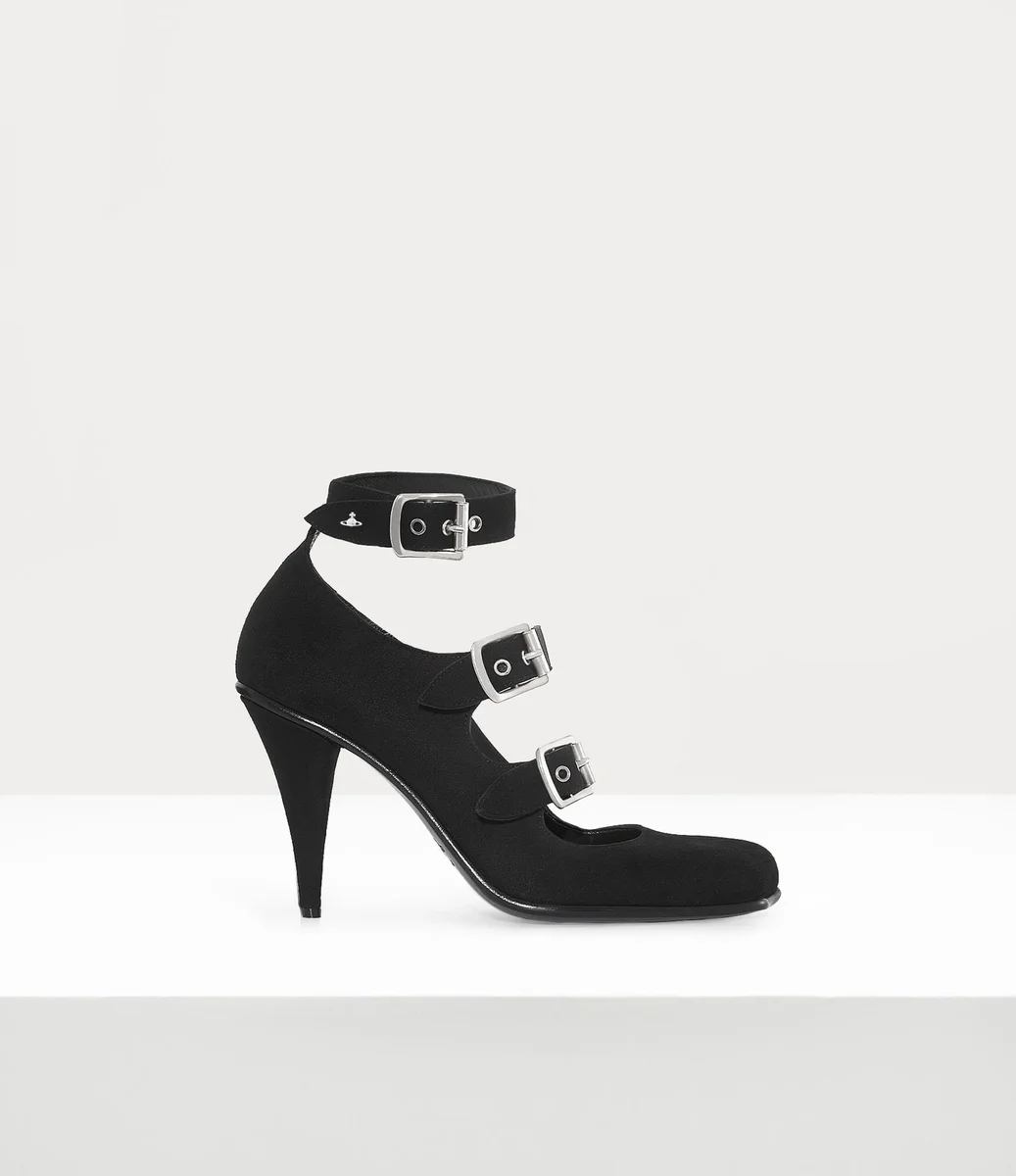 Vivienne Westwood Savage heels are crafted from suede leather, finished with silver-tone hardware and the orb motif on the strap of the design.